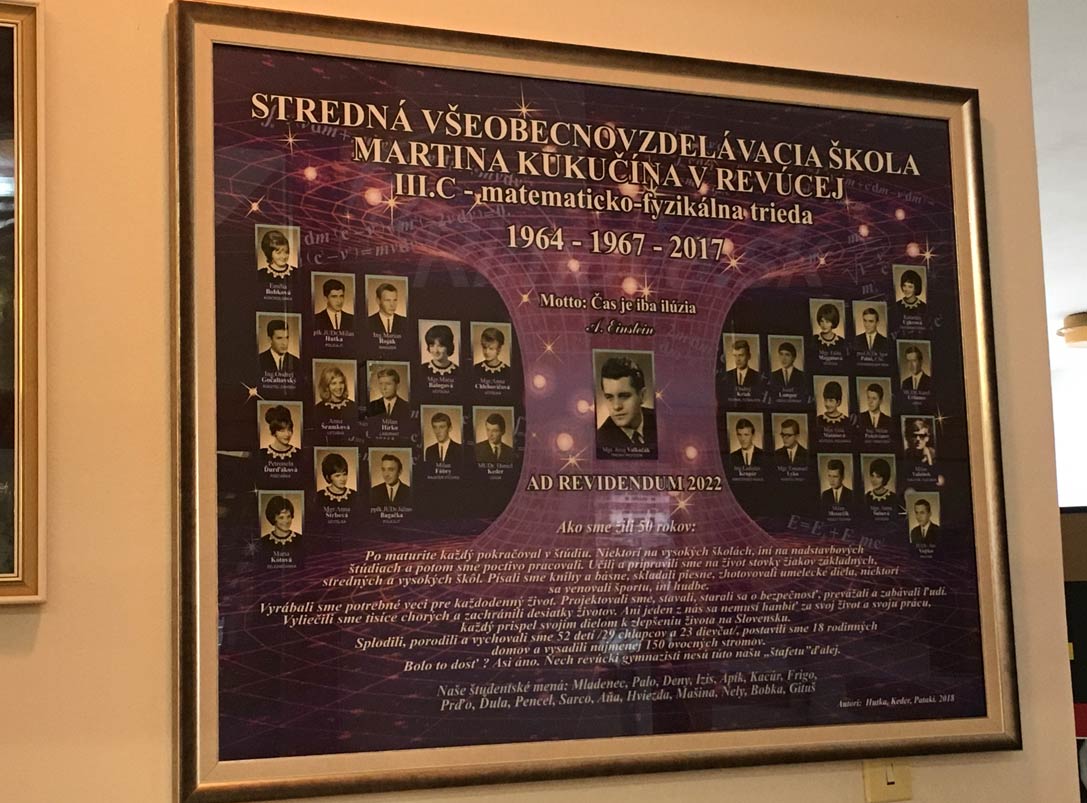 Neuveriteľný zážitok si odnášali z gymnázia Martina Kukučína v Revúcej jeho bývalí študenti z maturitného roku 1967. Matematicko-fyzikálnu III.C triedu vtedy navštevovalo 28 chlapcov a dievčat. Vtedy plní elánu do života. Zmaturovali, študovali ďalej, pracovali, no pri maturitách si neurobili tablo. Nedalo im to ani po polstoročí a uplynulý týždeň ho konečne mohli zavesiť na stenu gymnázia v Revúcej.