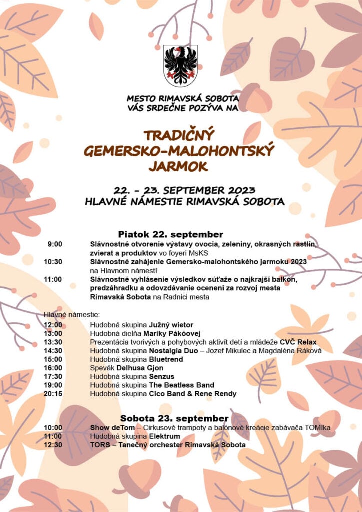 RIMAVSKÁ SOBOTA – Gemersko–malohontský jarmok sa uskutoční 22. a 23. septembra a tešiť sa môžete na skutočne bohatý program.