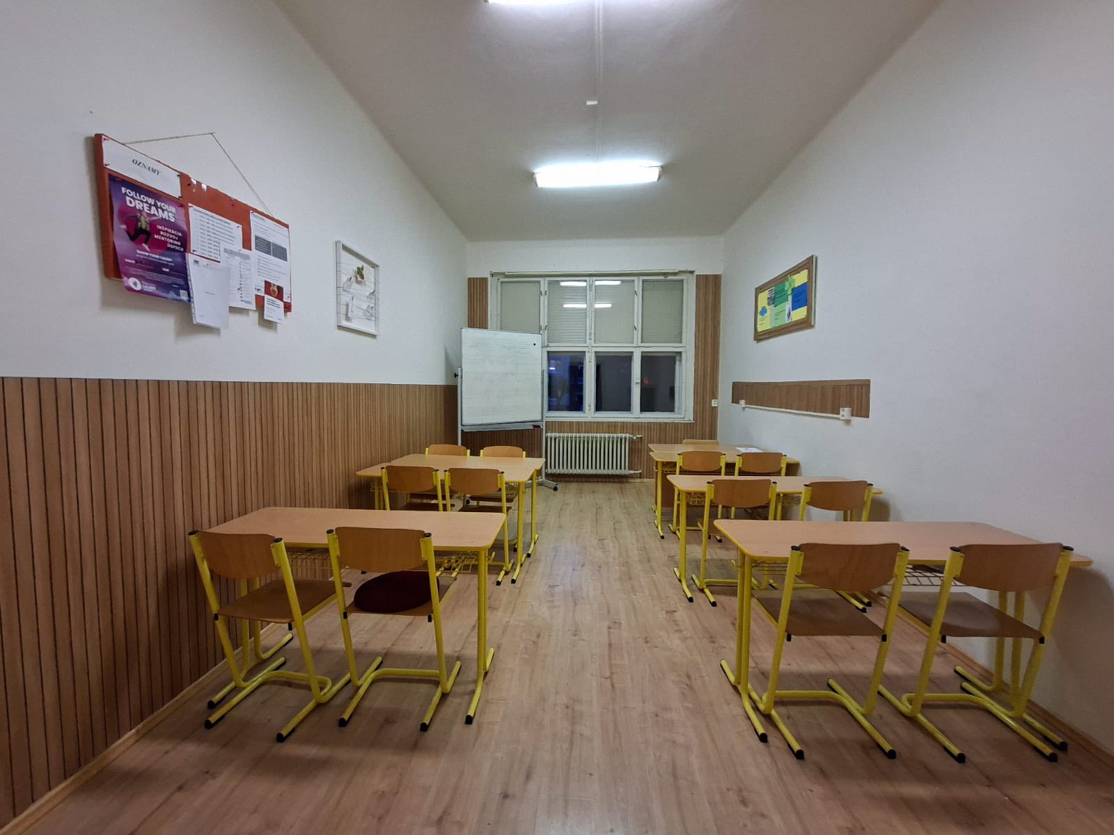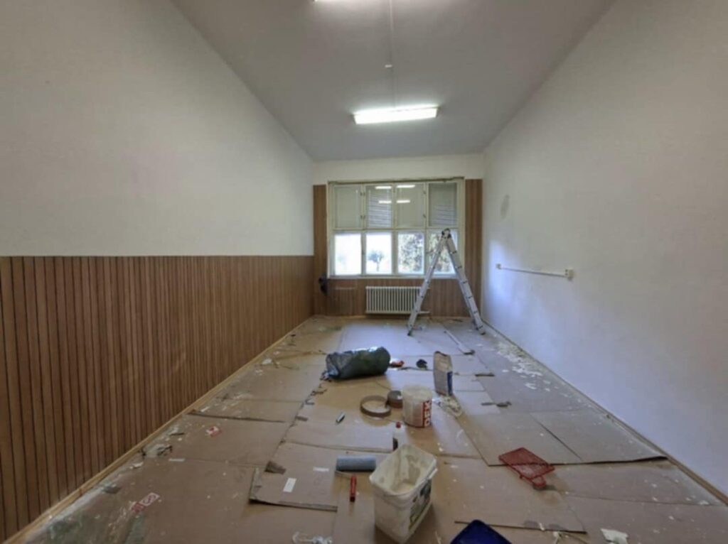 Prvá zrekonštruovaná učebňa je už hotová, do konca roka plánujú dokončiť ďalšie tri. Na rekonštrukcii pomáhajú učitelia a technický personál.