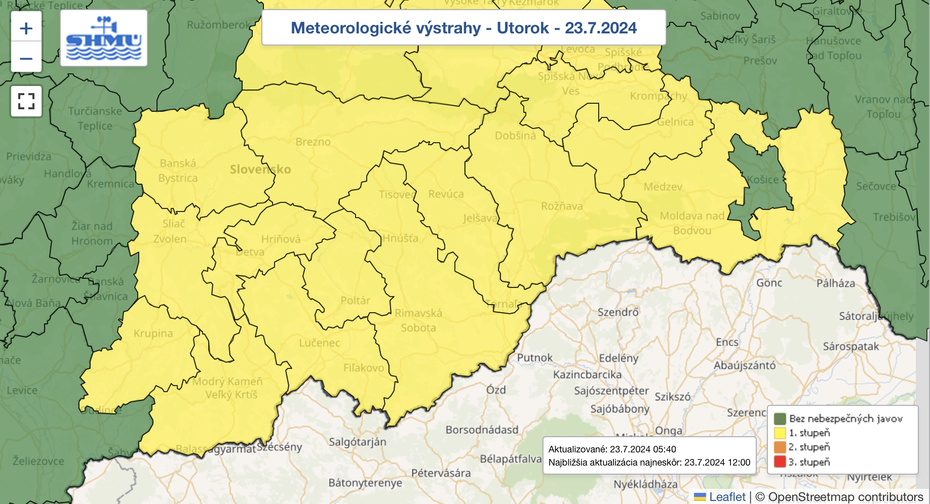 Výstraha na dnes, 23. júla, platí od 10:00 do 19:00 hod.
