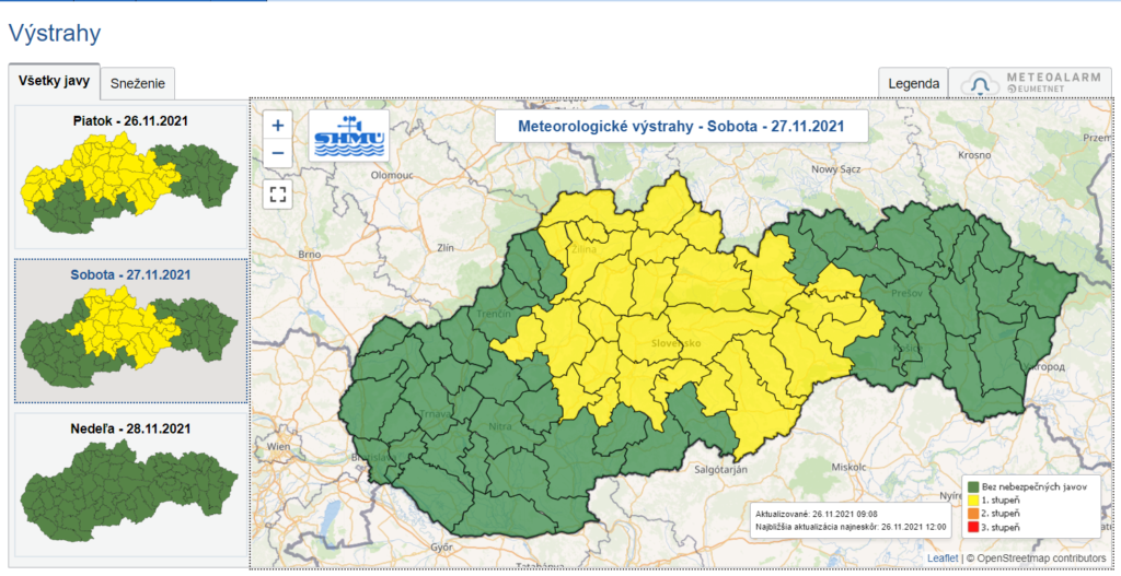 Výstraha pre okresy trvá od dnešného dňa od 15:00 do zajtra 2:00.