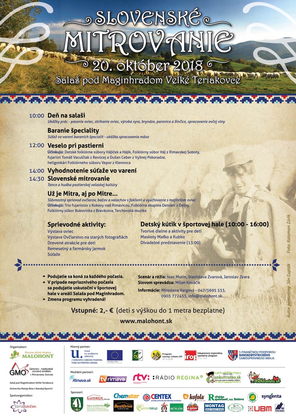 Dejiskom podujatia Slovenské mitrovanie bude už tradične Salaš pod Maginhradom vo Veľkých Teriakovciach. Program začína o 10:00 hod. ukážkami prác na salaši ako napríklad strihanie oviec, odváranie žinčice, výroba syrov, pareníc a bryndze či spracovanie ovčej vlny. Pri Humne bude prebiehať súťaž vo varení baraních špecialít, kde budú prezentované rôzne spôsoby spracovania baranieho mäsa. Do súťaže sa môžu prihlásiť 5-členné tímy priateľov, rodín či organizácií a firiem.