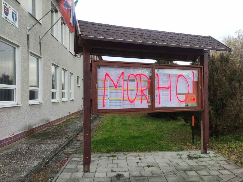 RIMAVSKÁ BAŇA - V piatok (19. 11.) sme vás informovali o výtržníctve neznámeho páchateľa, ktorý posprejoval informačné a úradné tabule v obciach Rimavské Zalužany, Rimavská Baňa, Hrachovo, Kociha a Veľké Teriakovce. Ako vtedy avizovala starostka obce Rimavská Baňa Elena Polóniová, v úmysle mala nájsť páchateľa na kamerovom zázname.