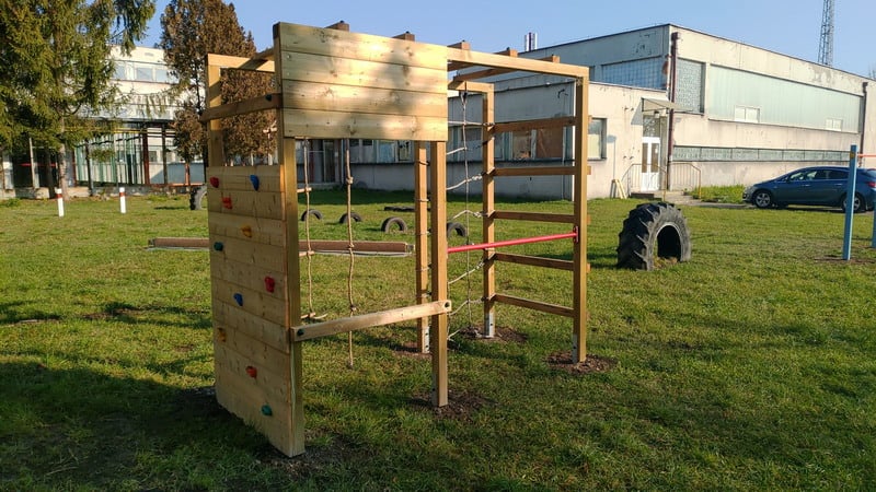Autorkou prekážkovej dráhy je telocvikárka K. Antalová, ktorú inšpiroval k tejto dráhe jej syn. „Naša škola poskytuje krásny veľký areál a je škoda ho nevyužiť a vytvoriť pre žiakov pútavé a zaujímavé miesto,“ uviedla škola.