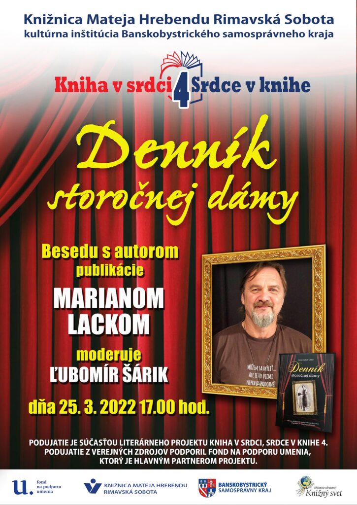 RIMAVSKÁ SOBOTA - V Knižnici Mateja Hrebendu sa 25. marca o 17-tej hodine uskutoční beseda k publikácii Denník storočnej dámy, ktorá je súčasťou projektu Kniha v srdci, srdce v knihe 4. Bol finančne podporený Fondom na podporu umenia.