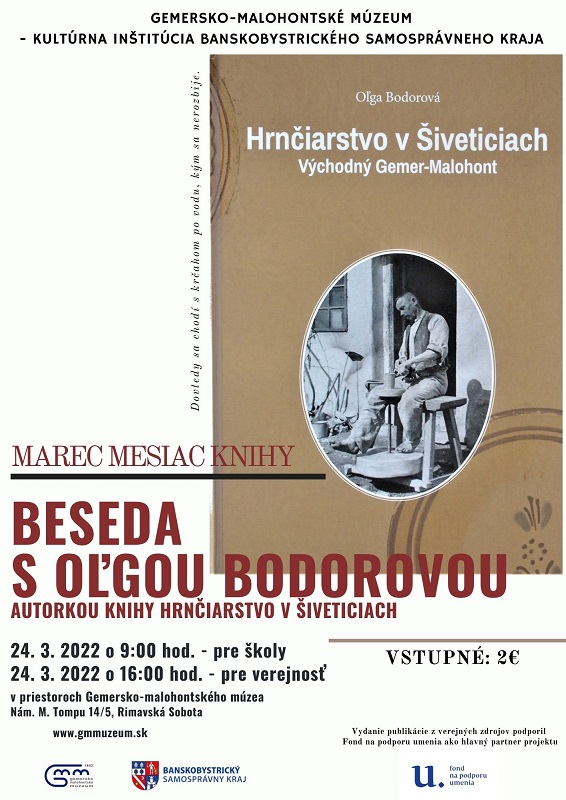RIMAVSKÁ SOBOTA - Gemersko-malohontské múzeum (GMM) vás pozýva na besedu s Oľgou Bodorovou, riaditeľkou GMM a autorkou knihy Hrnčiarstvo v Šiveticiach. Uskutoční sa 24. apríla o 15:30 hod. v priestoroch múzea.