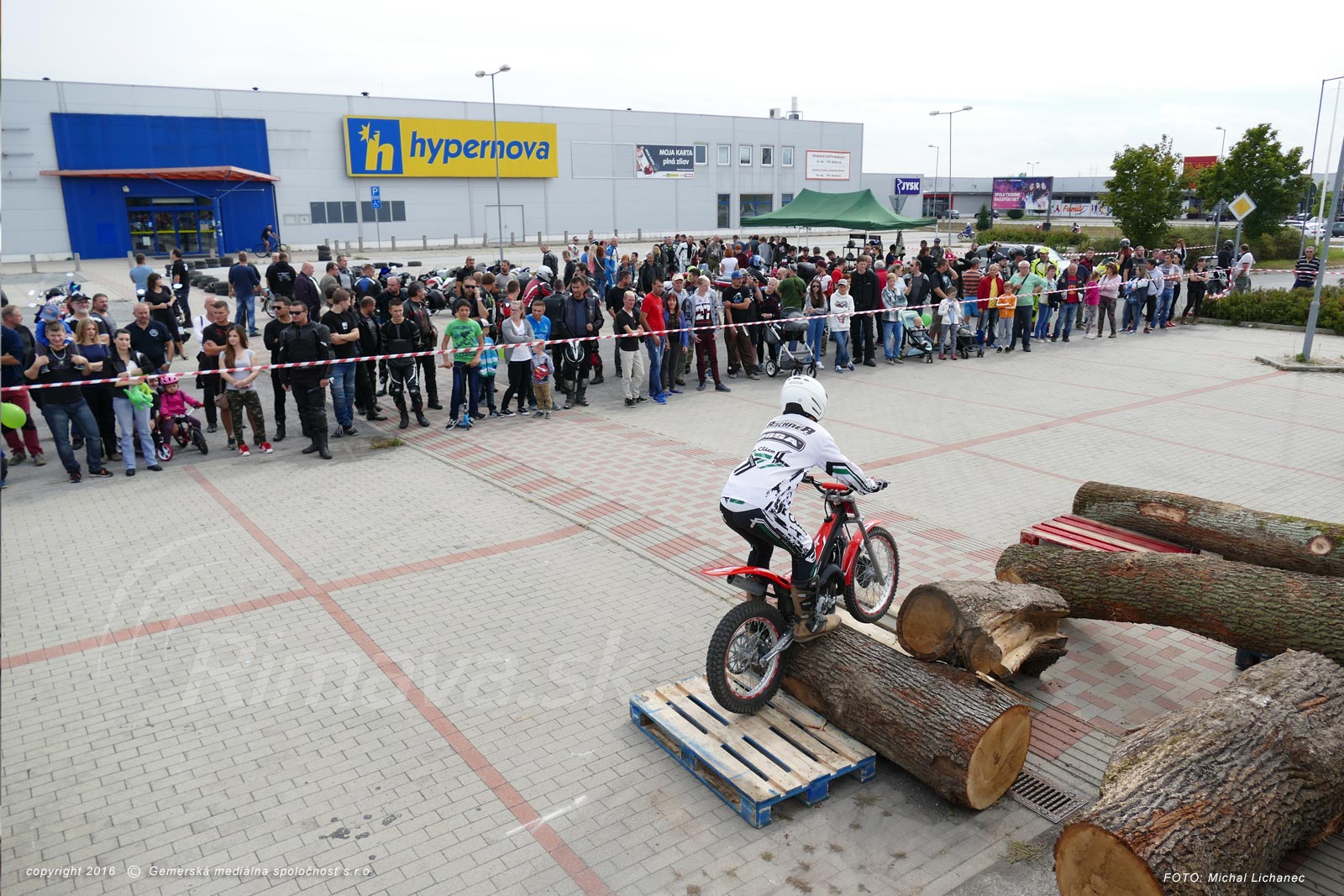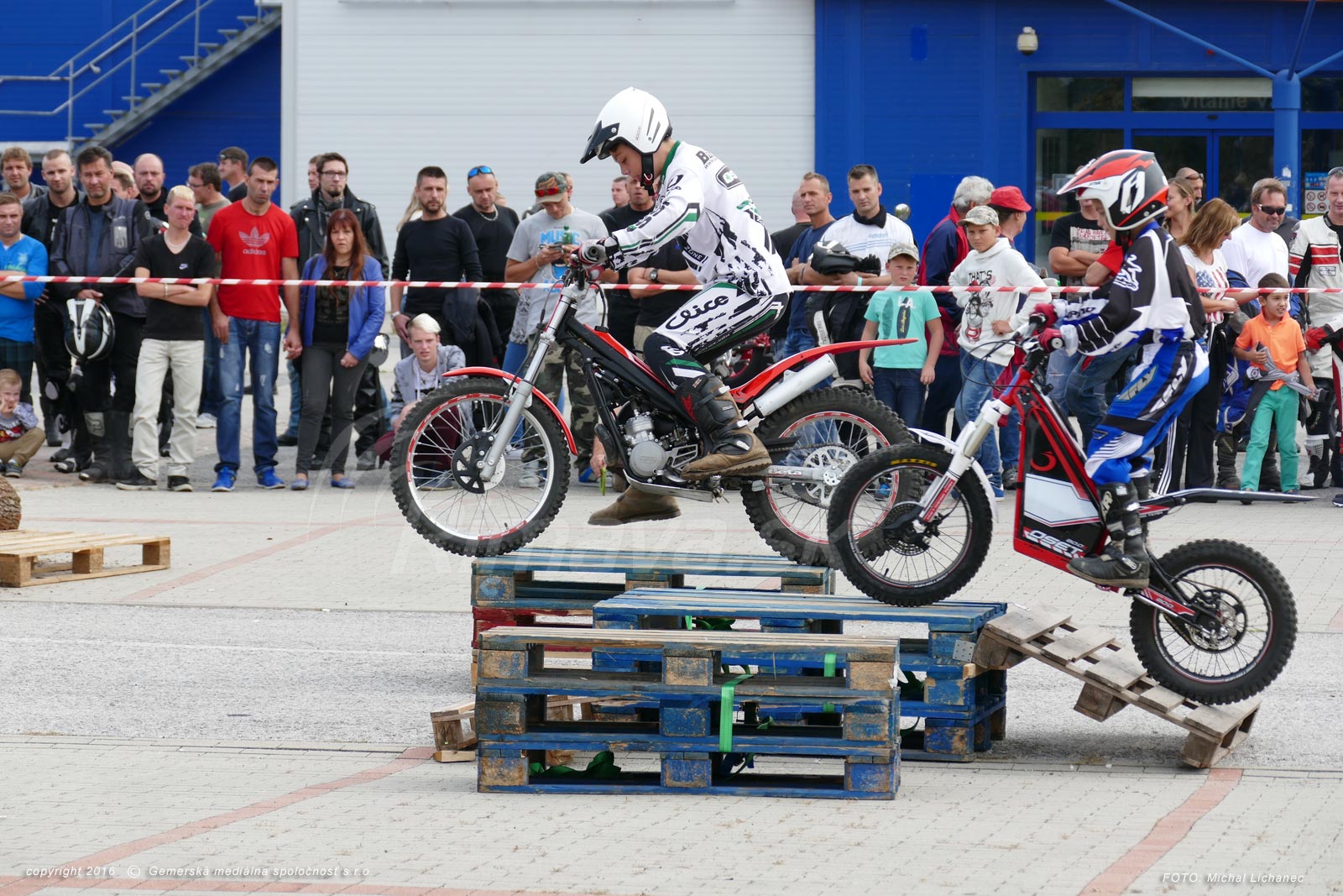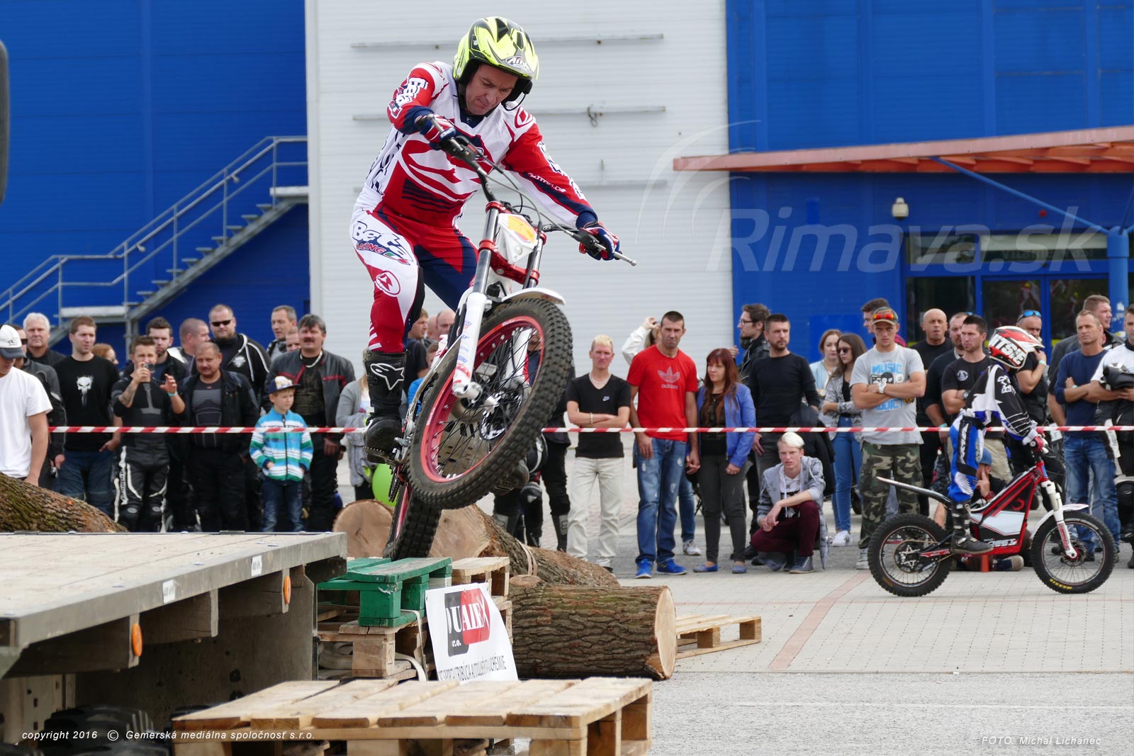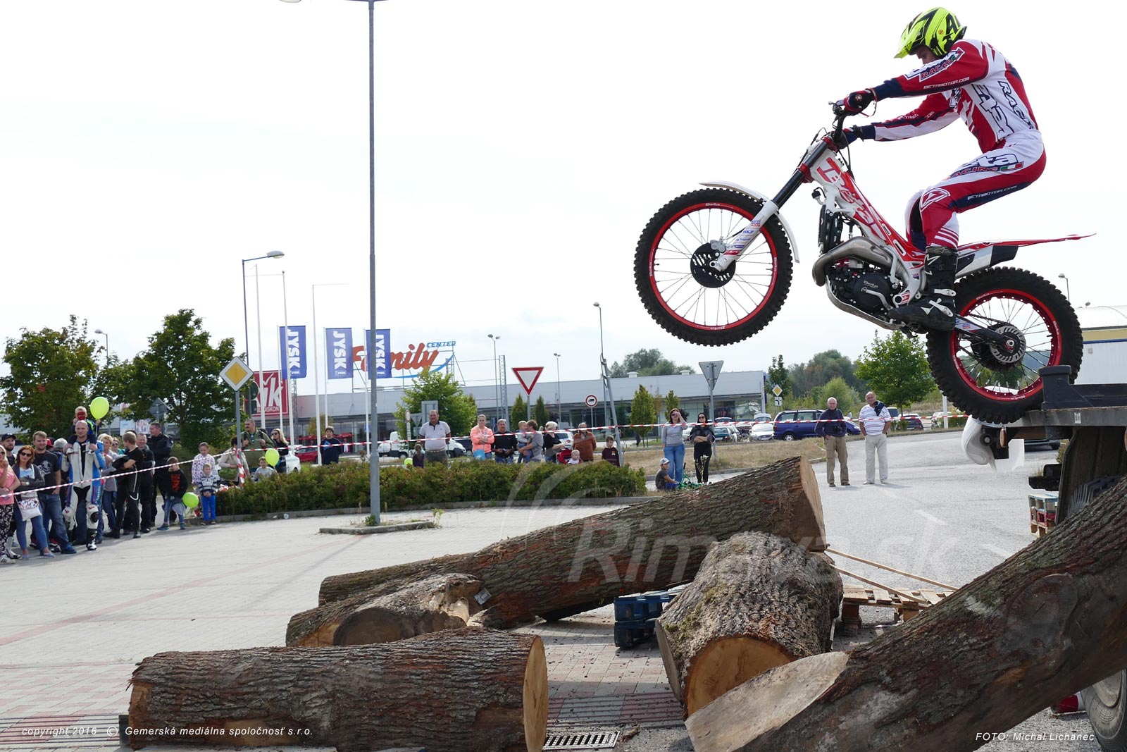 Rimavskosobotskí motorkári a priaznivci dvojkolesových tátošov z regiónu ukončili sezónu spanilou jazdou mestom a exhibíciou majstra Európy v triale Vlada Kothaya. Na parkovisku pred bývalou Hypernovou sa skákalo cez neživé prekážky ale aj cez ľudí. Pod motorku si ľahli postupne štyria odvážlivci. Ako pre Rimava.sk uviedol Vladimír Kothay z Nitry, jeho osobný rekord je preskočenie 23 ľudí. „To bolo keď som ešte bol mladší, 23 nerozvážnych detí si mi ľahlo pod motorku, ale dal som to,“ povedal Kothay, ktorý je minuloročný majster Európy v kategórii jazdcov nad 40 rokov, tento rok vicemajster a okrem toho 20 násobný majster Slovenska. Podľa jeho slov začínal na bicykli ako sídliskové dieťa, cesta bola pritom pre neho cieľom a tým, že ho to bavilo, tak dosiahol aj výsledky.