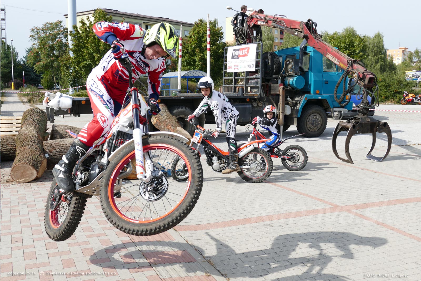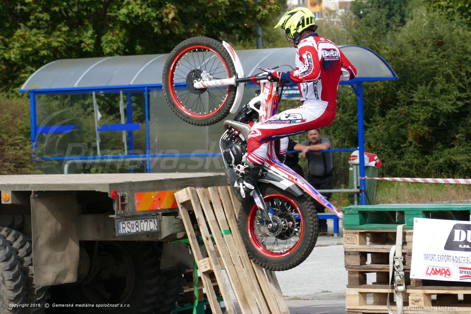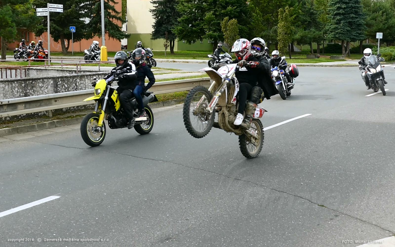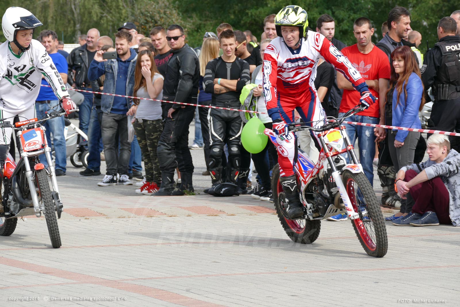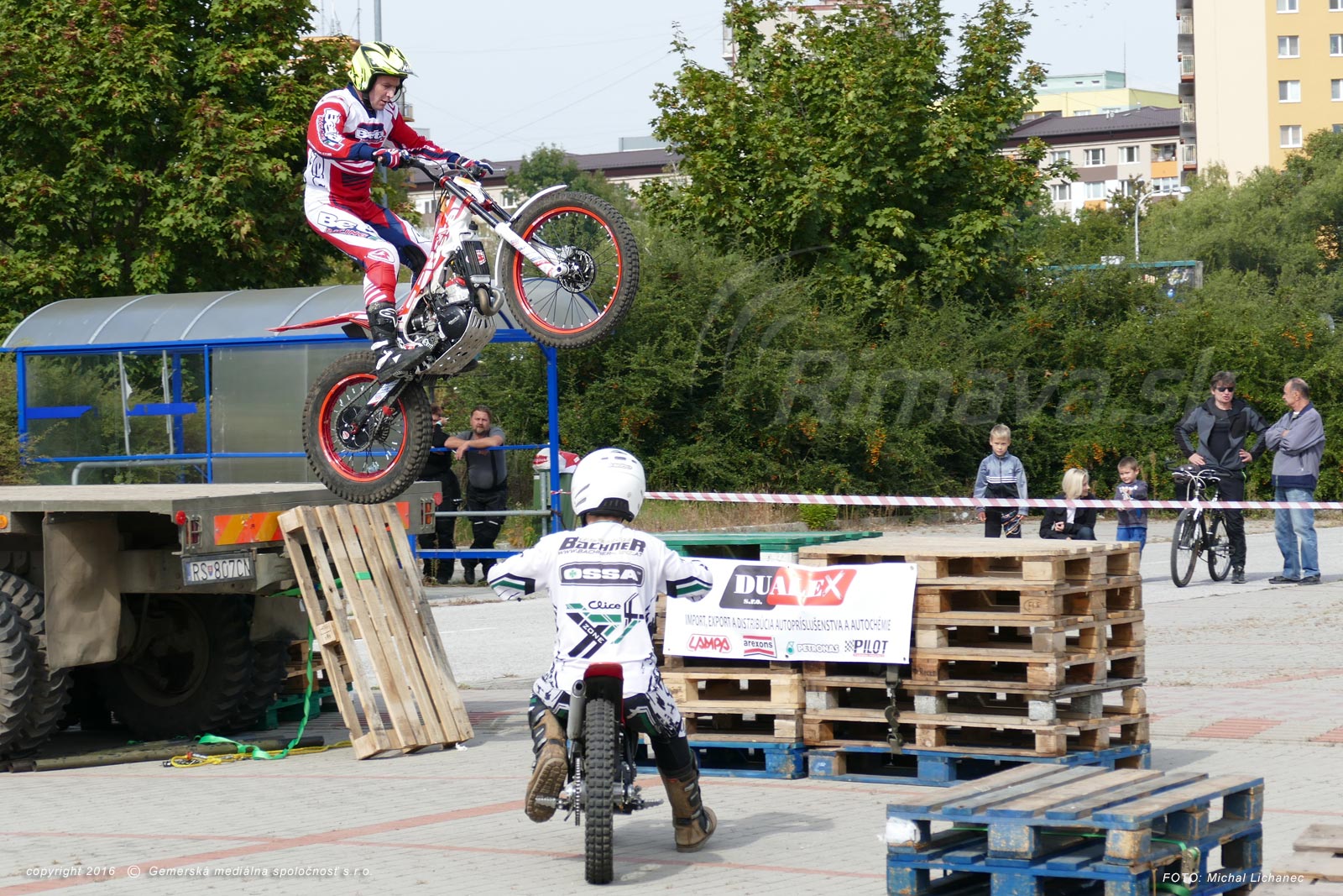 Rimavskosobotskí motorkári a priaznivci dvojkolesových tátošov z regiónu ukončili sezónu spanilou jazdou mestom a exhibíciou majstra Európy v triale Vlada Kothaya. Na parkovisku pred bývalou Hypernovou sa skákalo cez neživé prekážky ale aj cez ľudí. Pod motorku si ľahli postupne štyria odvážlivci. Ako pre Rimava.sk uviedol Vladimír Kothay z Nitry, jeho osobný rekord je preskočenie 23 ľudí. „To bolo keď som ešte bol mladší, 23 nerozvážnych detí si mi ľahlo pod motorku, ale dal som to,“ povedal Kothay, ktorý je minuloročný majster Európy v kategórii jazdcov nad 40 rokov, tento rok vicemajster a okrem toho 20 násobný majster Slovenska. Podľa jeho slov začínal na bicykli ako sídliskové dieťa, cesta bola pritom pre neho cieľom a tým, že ho to bavilo, tak dosiahol aj výsledky.