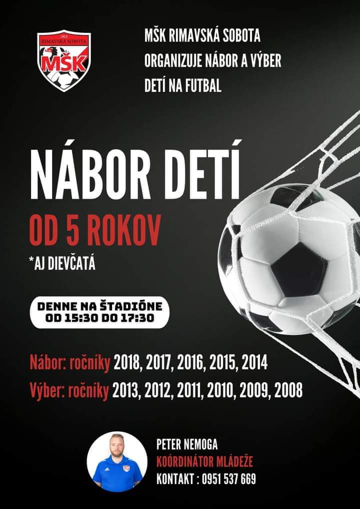 RIMAVSKÁ SOBOTA – MŠK Rimavská Sobota príjma nové deti do svojich tímov. Ak máte doma športového nadšenca od 5 do 15 rokov, môže sa sa stať súčasťou úspešného futbalového klubu.