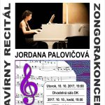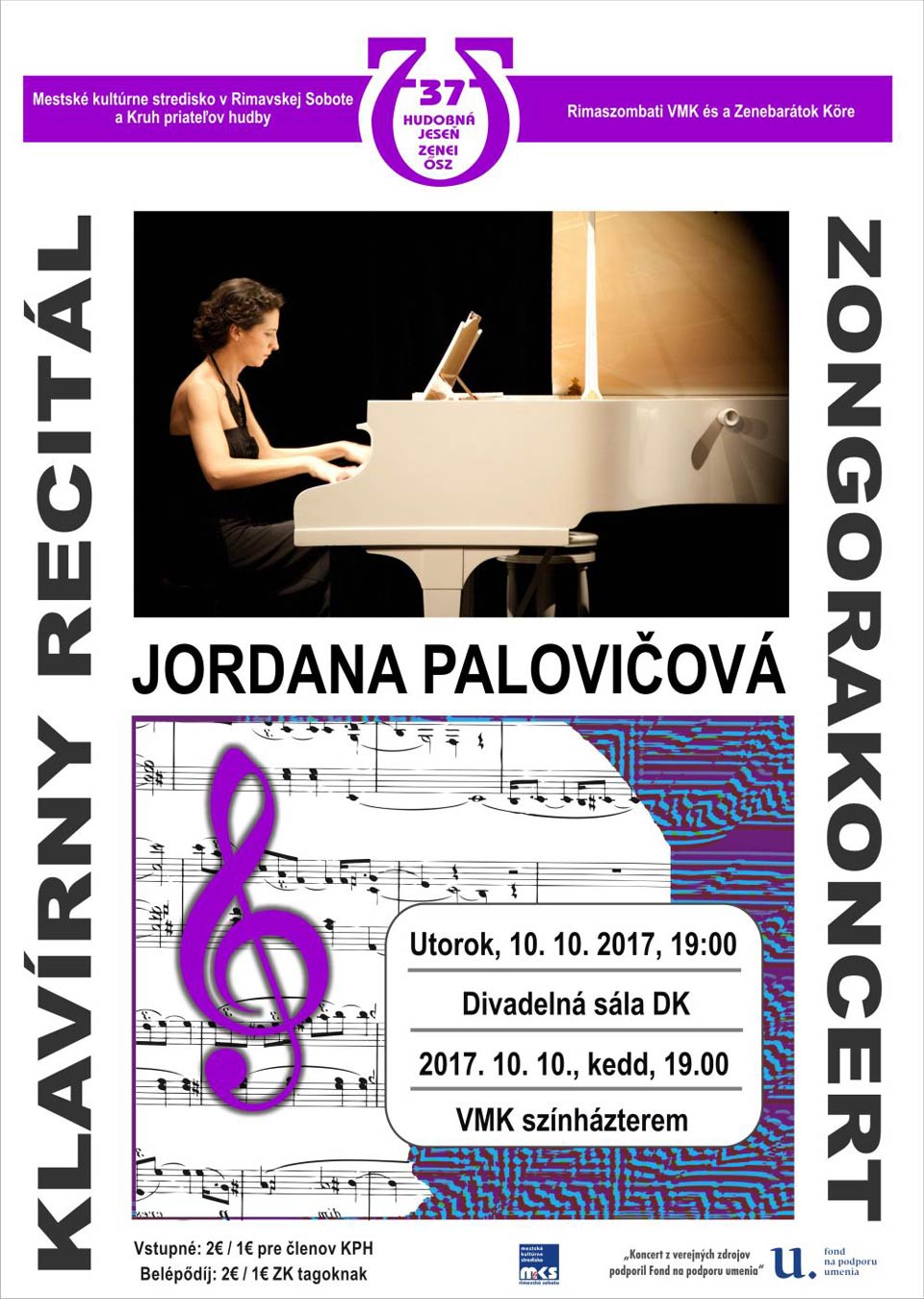 Všetkým milovníkom krásnej hudby je venovaný ďalší koncert 37. ročníka Hudobnej jesene. V utorok, 10. októbra o 19.00 hod. v divadelnej sále (od Kauflandu) na klavírnom recitály Jordany Palovičovej odznejú skladby E. Suchoňa, F. Schuberta, C. Debussyho a I. Szeghyho. Koncert podporil Fond na podporu umenia. Vstupné: 2 euro / 1euro pre členov Kruhu priateľov hudby.