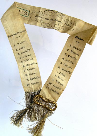Podľa jej slov sa na uhorských plesoch tanečný poradovník objavil prvý krát v roku 1840.  Drobná knižočka, do ktorej boli zapisované mená tanečných partnerov, sa nosila počas plesu zavesená na opasku alebo na gombíkovej dierke a pre každý prípad disponovala aj malou ceruzkou.