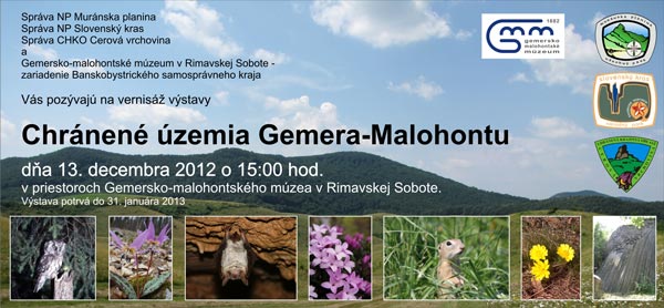 Chránené rastliny, živočíchy aj neživú prírodu regiónu chce predstaviť Gemersko-malohontské múzeum v Rimavskej Sobote prostredníctvom výstavy, ktorú otvorí dnes popoludní o 15.00 hod. Ako informovala biologička Monika Gálffyová, výstava návštevníkom múzea priblíži prírodu Národného parku Muránska planina, Národného parku Slovenský Kras a Chránenej krajinnej oblasti Cerová vrchovina.