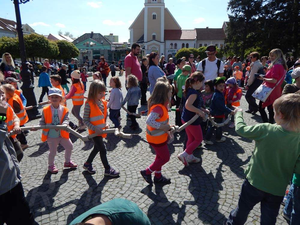 Na vytvorenie pavučiny vzťahov deti za pomoci špagátov prevliekali prázdne rolky, ktoré podľa Novotného symbolicky znamenali živú časť prírody, a to trojuholník medzi človekom, rastlinami a živočíchmi. Deti ich originálne pomaľovali motívmi kvetov a živočíchov. Rovnako aj malí škôlkari vytvorili z roliek rôzne obrazce ako bol had, pavučina a podobne. Na pódiu vystúpili deti z Enviroklubu CVČ Relax, ktoré svojimi vystúpeniami s názvom Ekobáseň, ekoscénka – Les, ktorý dých aj za nás, poukázali na rôzne negatívne zásahy človeka do prírody. Pohybové a tanečné vystúpenia predviedli mažoretky Estrella a vzájomnú spolupatričnosť medzi pódiom a obecenstvom pomocou tanca Zumba stvárnili deti so svojím trénerom Máriom.