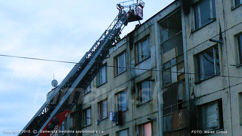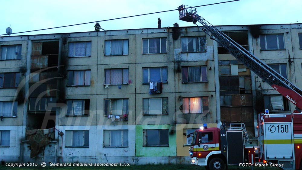 Na rómskom sídlisku Dúžavská cesta pri Rimavskej Sobote horel bytový dom, obyvateľov evakuovali. Ako Rimava.sk informoval krajský hovorca hasičov Erik Piater, požiar bol na tiesňovú linku ohlásený po 19-tej hodine, na miesto udalosti boli vyslaní šiesti hasiči s technikou. “Po príchode bolo od obyvateľov zistené, že horí strecha nad bytmi, ako aj v byte na 3. a 4. podlaží,” priblížil Piater, podľa ktorého požiar hasili pomocou výškovej techniky, ako aj vo vnútorných priestoroch. Bytovka bola medzitým za pomoci členov rómskej hliadky evakuovaná. Po lokalizácii požiaru boli podľa Piatera priestory odvetrané, skontrolované a skryté ohniská zlikvidované. Celkovo zasahovalo desať hasičov.