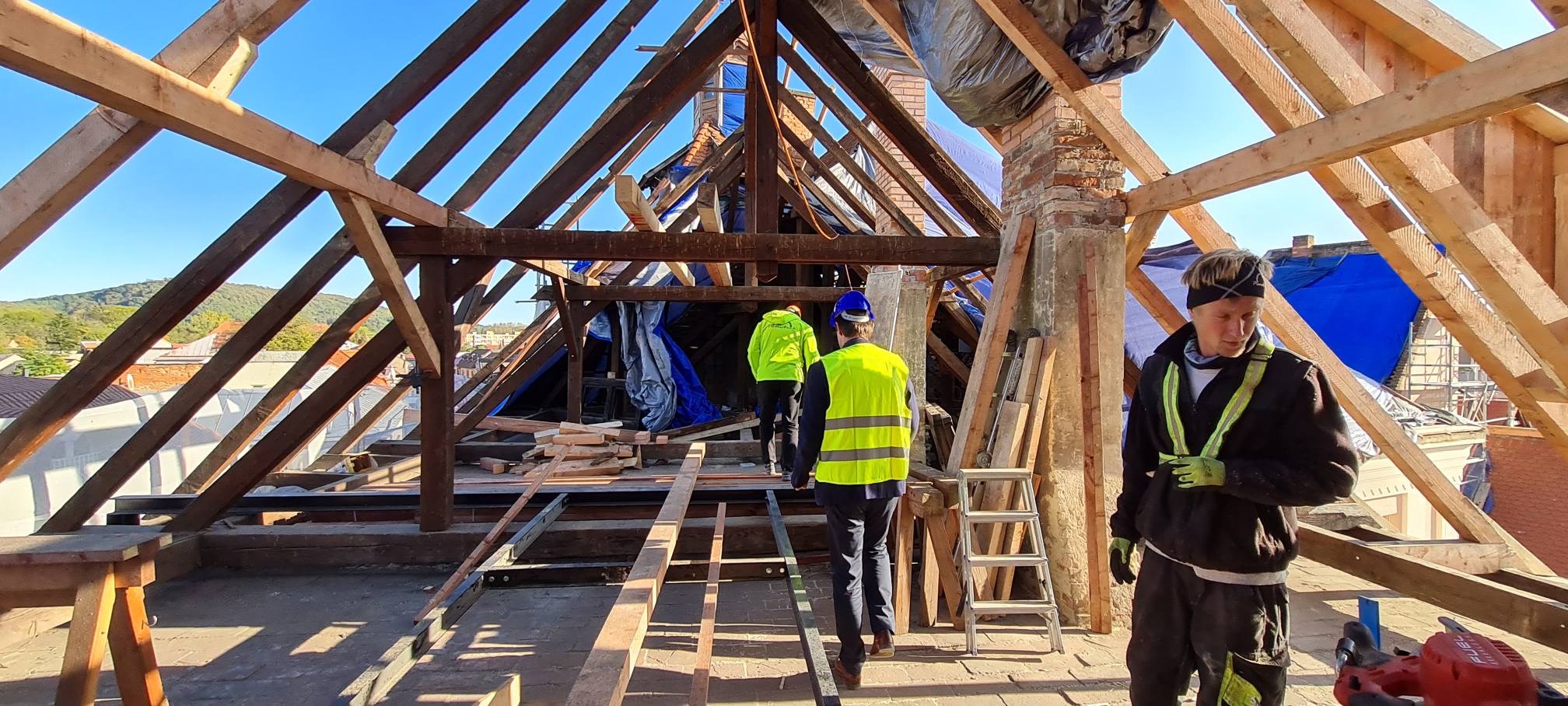 FIĽAKOVO - Práce na rekonštrukcii fiľakovskej radnice sa začali pred štyrmi mesiacmi. Počas októbra na stavbe prebehol kontrolný deň zo strany vedenia mesta a poslancov mestského zastupiteľstva. Ako informovala hovorkyňa mesta Klaudia Mikuš Kovácsová, zhotoviteľ stavby intenzívne pracuje na viacerých častiach budovy súčasne – na inštaláciách, fasáde, streche i na dvore.