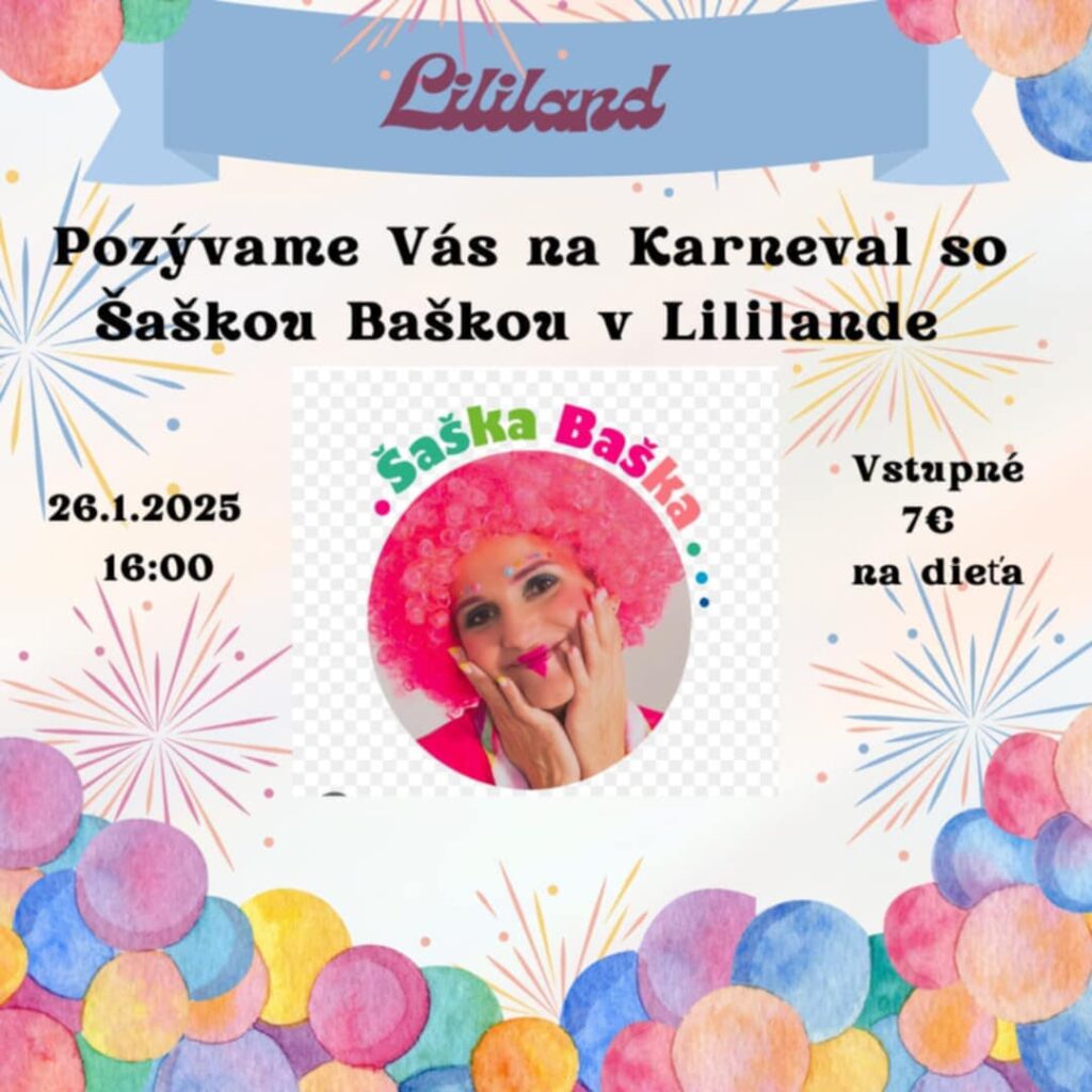 RIMAVSKÁ SOBOTA - Dňa 26. januára 2025 sa v zábavnom parku Lililand uskutoční podujatie, ktoré poteší malých aj veľkých. Šaška Baška prichádza do Lililandu s obľúbenou karnevalovou témou.