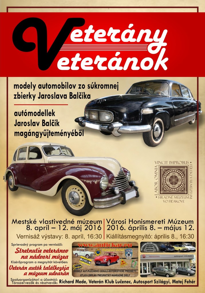 Ako ďalej Rimava.sk informovala riaditeľka Hradného múzea Viktória Tittonová, okrem modelov vystavia aj fotografie ozajstných veteránov, staré benzínové bandasky či motorové vesty. „Na nádvorí múzea sa odprezentuje približne 10 až 12 veteránov, väčšinou škodovky, ale aj Ford Cortina, Volga, Trabant,“ priblížila riaditeľka a dodala, že týchto „pánov na štyroch kolesách“ predvedú zberatelia z lučeneckého klubu veteránov.