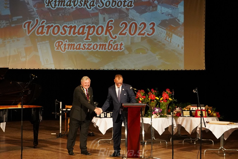 RIMAVSKÁ SOBOTA – Ceny odovzdal primátor Jozef Šimko spolu s predsedom NR SR Borisom Kollárom v Mestskom kultúrnom stredisku v rámci slávnostného zasadnutia MsZ dnes (5. mája) počas Dní mesta Rimavská Sobota.