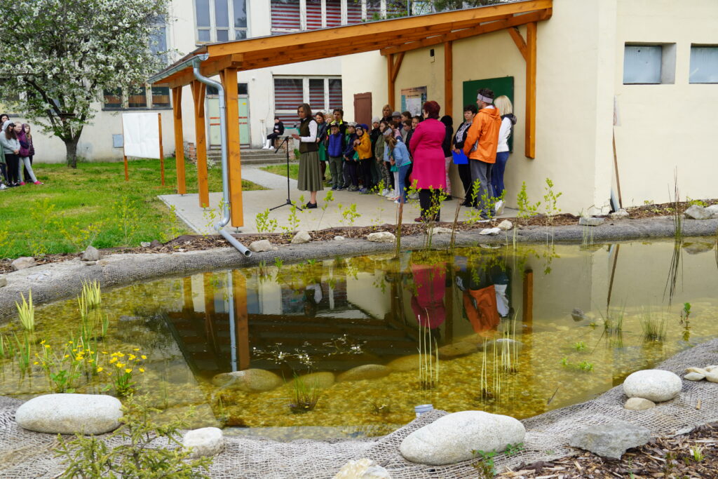 Na slávnostnom otvorení jazierka sa okrem zástupcov školy zúčastnili aj žiaci, ktorí sa vďaka projektu dozvedeli viac o klimatických zmenách. Malý vodný a mokraďový ekosystém má totiž nielen estetický, ale aj ekologický a klimatický význam.