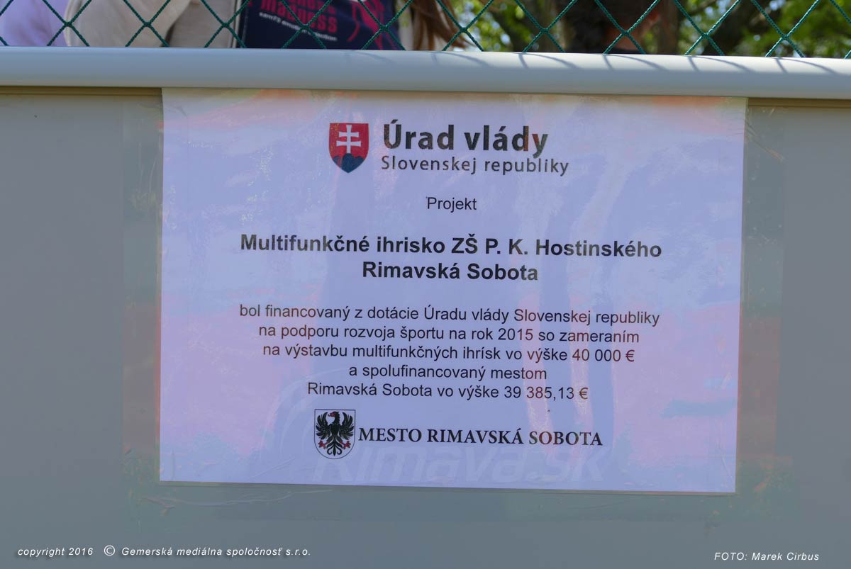 Najväčšie multifunkčné ihrisko, s rozmermi 40 x 20 metrov, v Rimavskej Sobote je od dnes, 21. apríla, oficiálne otvorené. Ihrisko na Základnej škole P. K. Hostinského v hodnote takmer 80 tis. eur bolo postavené z finančného príspevku z dotačného programu úradu vlády vo výške 40 tis. eur, ktorý získal zriaďovateľ školy, rimavskosobotská samospráva. Zvyšnú časť, viac ako 39 tis. eur, hradilo mesto z rozpočtu. Symbolickým výkopom lopty ihrisko „oživila“ riaditeľka školy Anita Antalová a viceprimátor Rimavskej Soboty Ladislav Rigó.