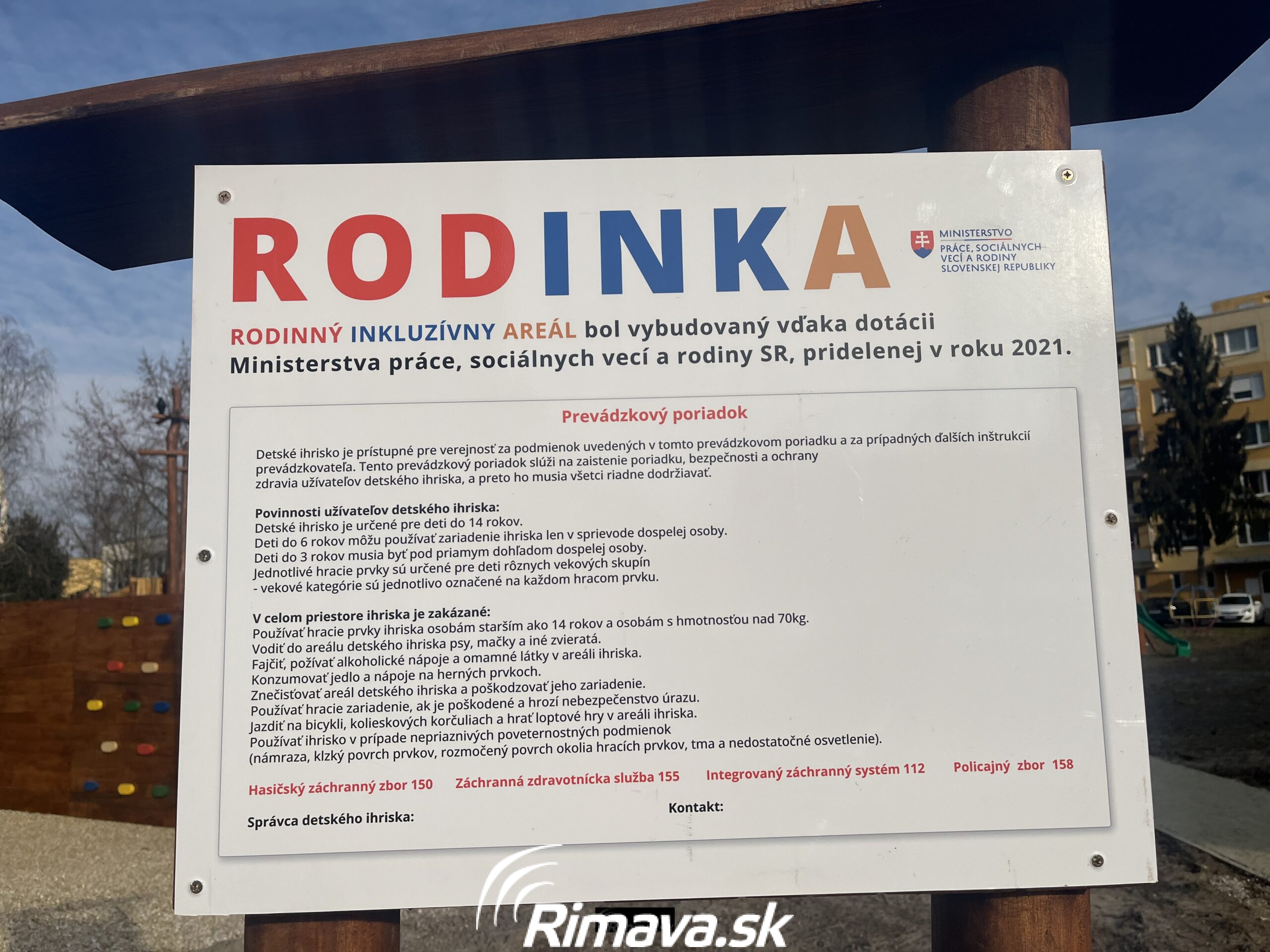 Rimavská Sobota získala dotáciu na detské ihrisko z Ministerstva práce, sociálnych vecí a rodiny SR ešte v roku 2021 v hodnote 50-tisíc eur. Zmluvu na vybudovanie ihriska pre rodiny s deťmi podpísalo mesto vtedy s firmou Flora Servis Group s.r.o., ktorá termín nedodržala, a tak s ňou mesto rozviazalo zmluvu.