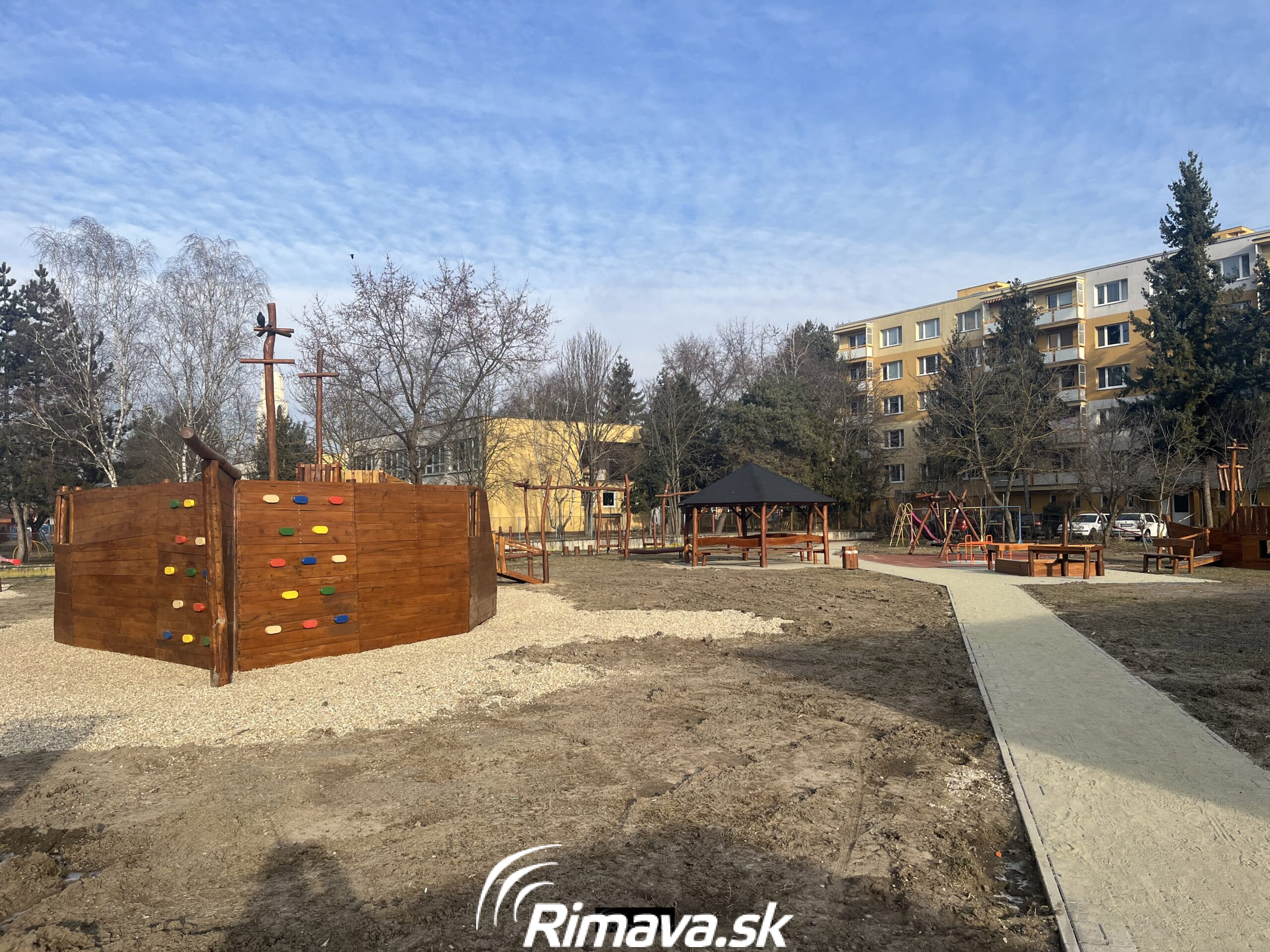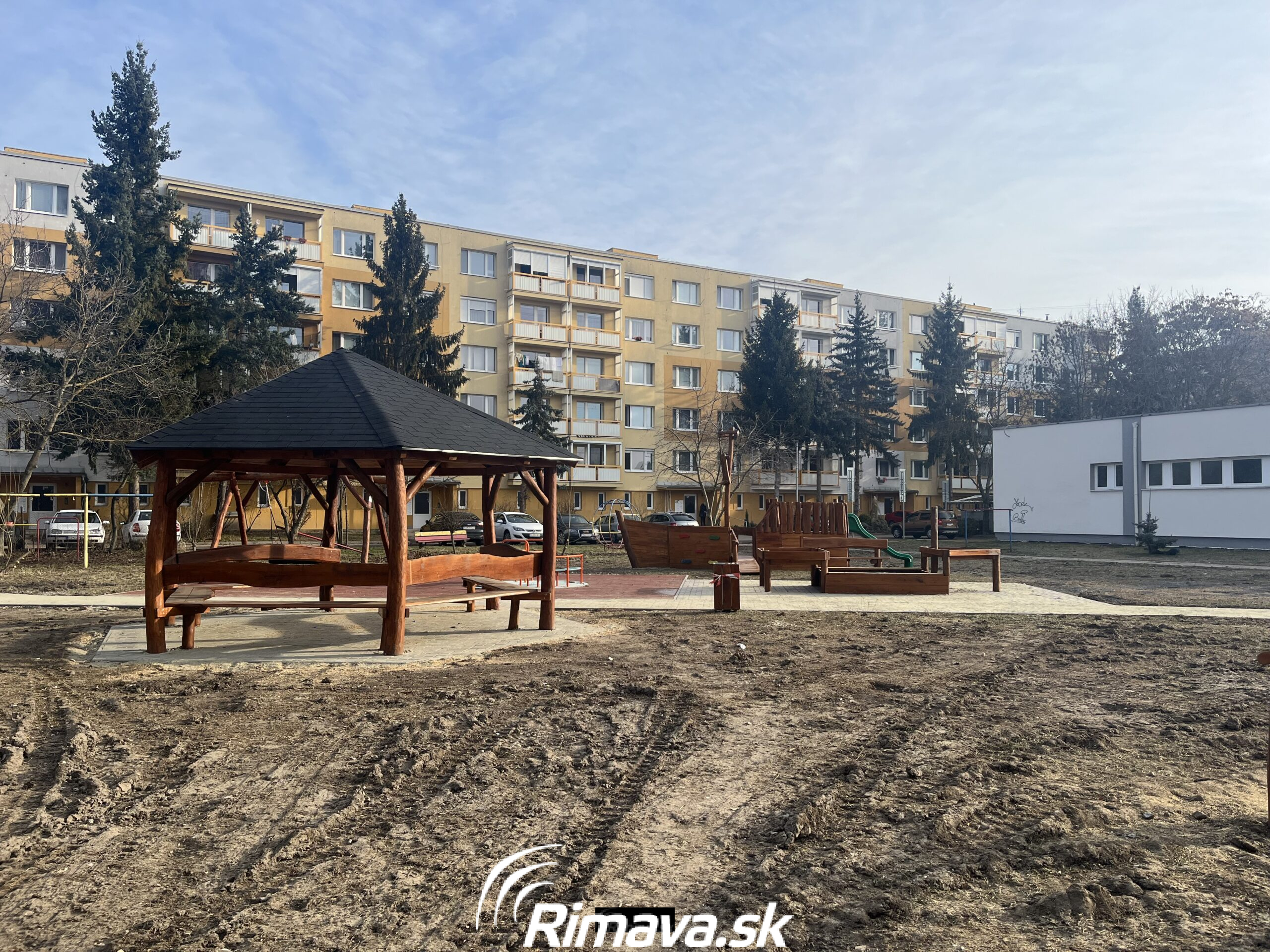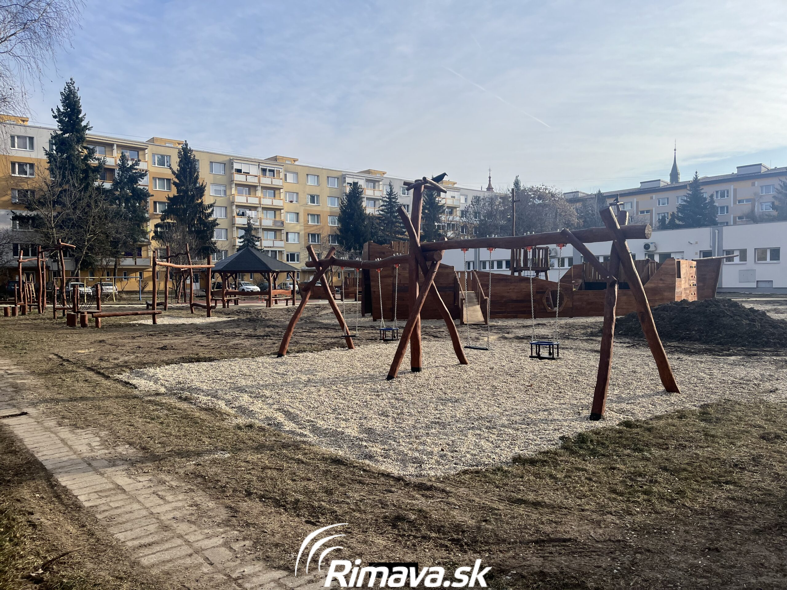 RIMAVSKÁ SOBOTA – Hoci malo detské ihrisko Rodinka na Hatvaniho ulici stáť už koncom augusta 2022, jeho zhotovenie skomplikoval nezodpovedný dodávateľ. Inkluzívne ihrisko by malo byť oficiálne otvorené začiatkom jari.