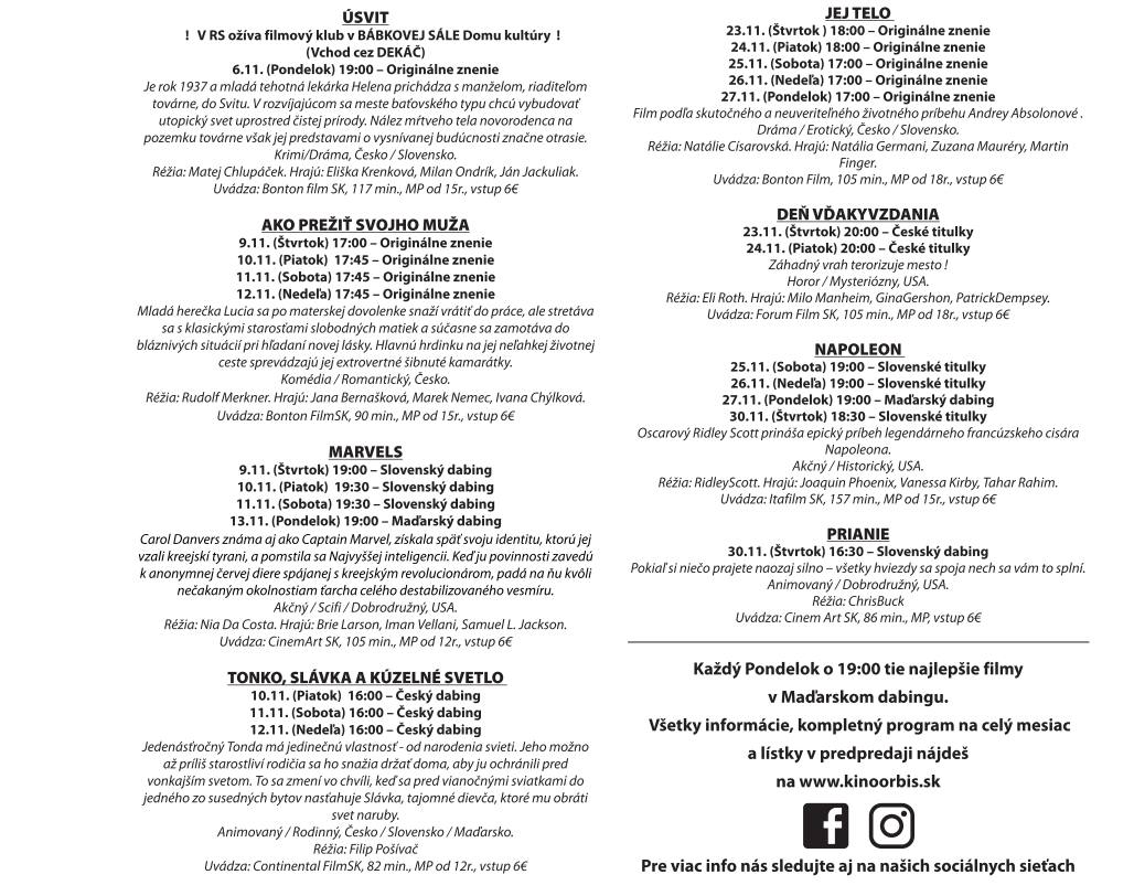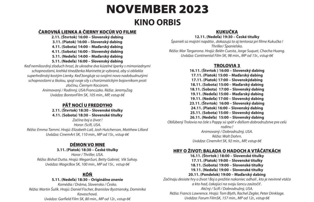 Viac informácií nájdete aj na Facebooku a Instagrame Kina Orbis.