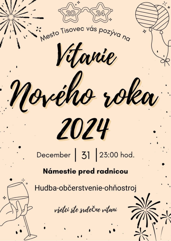 TISOVEC – Mesto Tisovec vás tiež pozýva na námestie Dr. V. Clementisa, kde spoločne s primátorom privítate nový rok. Od 23:00 bude pripravená hudba, občerstvenie i ohňostroj.