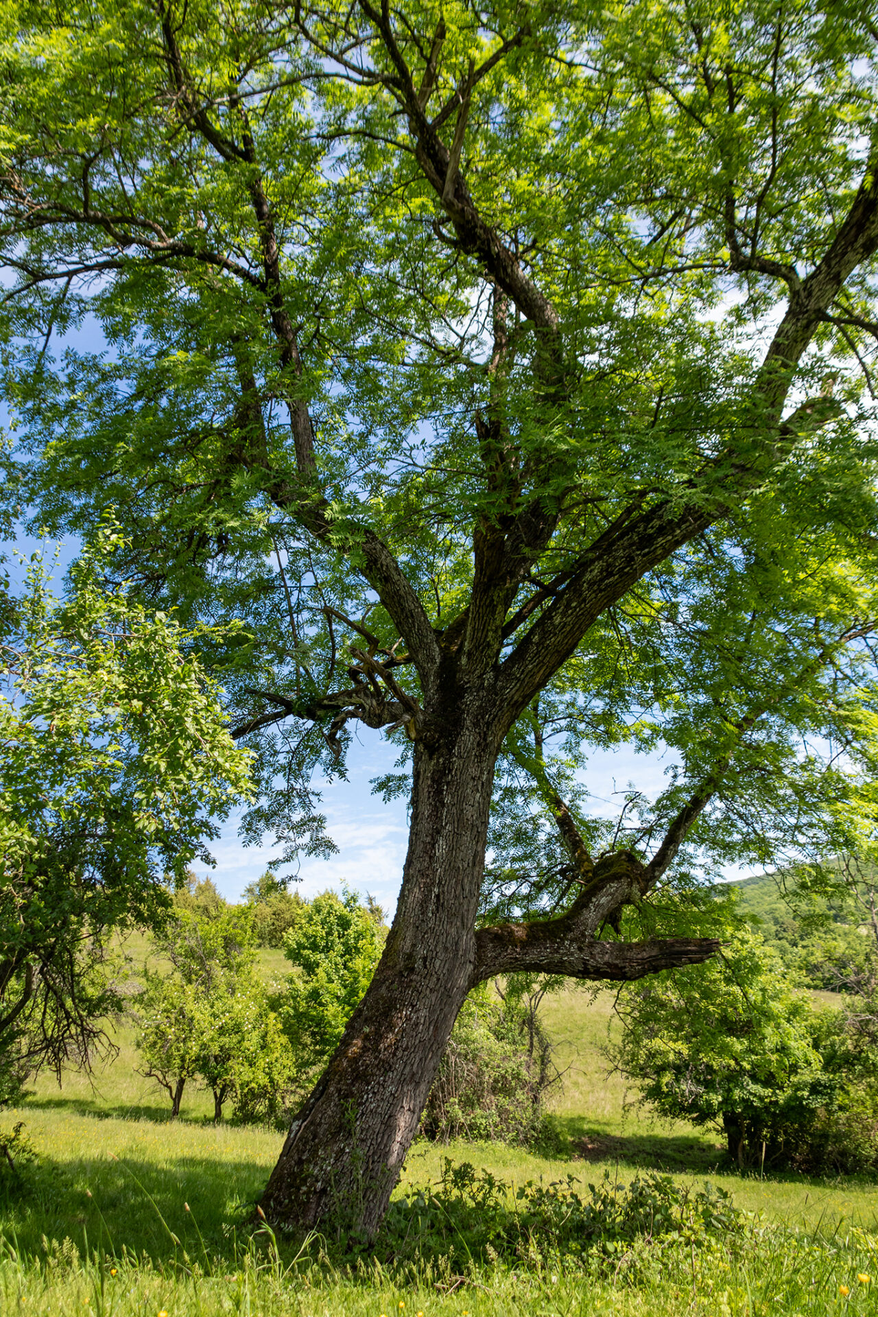 Miestny obyvateľ spomína na udalosti z detstva, keď približne pred 70. rokmi oskoruša rozdeľovala dve terasovité role, často sa tieto stromy totiž sadili ako hraničné, medzi chotármi.