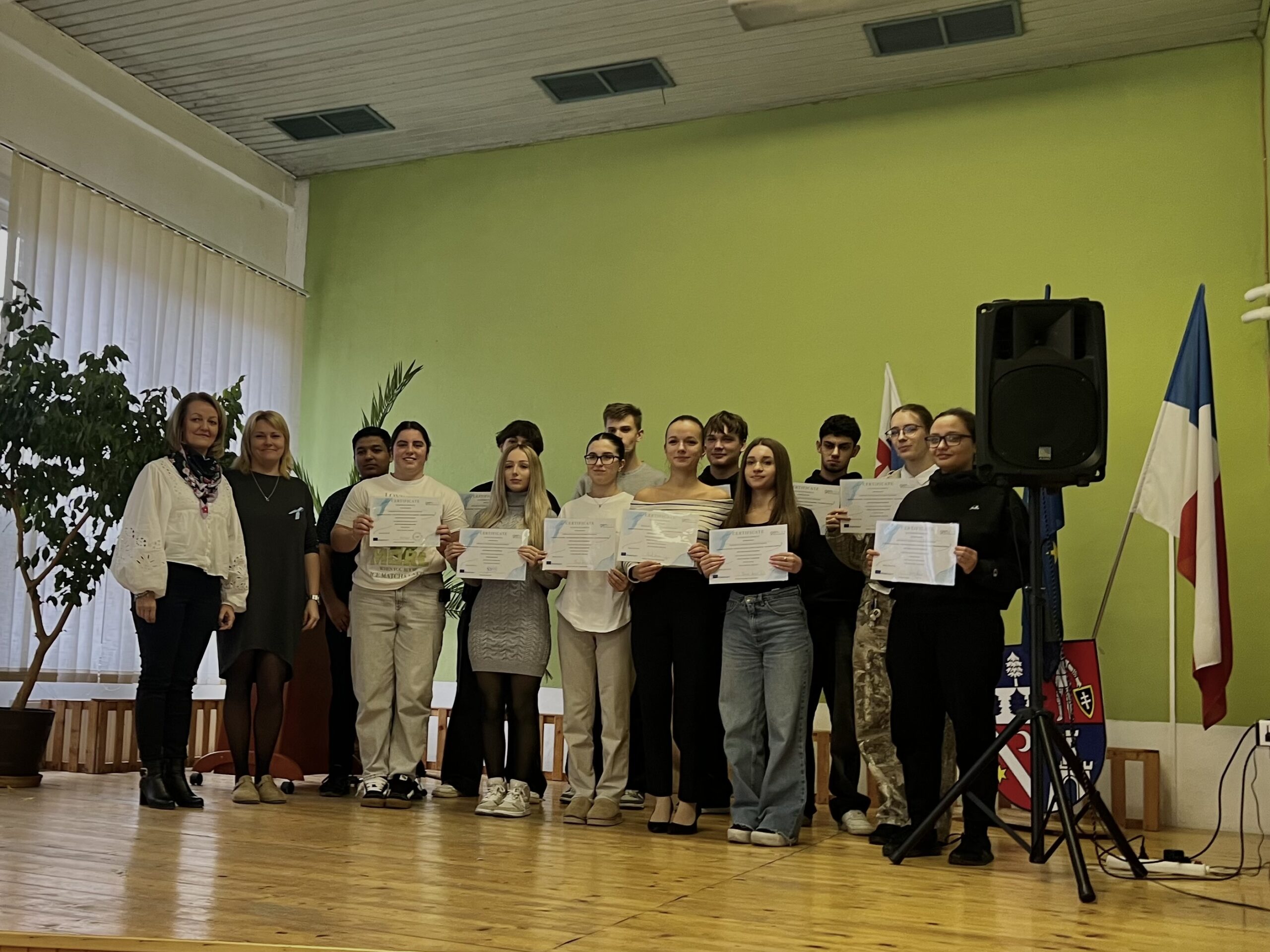 Svoje cenné poznatky a dojmy predstavili všetci účastníci projektu pred celou školou na špeciálnej prezentácii, ktorá sa uskutočnila 14. novembra 2025. Počas tohto slávnostného dopoludnia pani riaditeľka školy PaedDr. Miriam Szántóová odovzdala žiakom certifikáty Erasmus+ Mobility o úspešnom absolvovaní zahraničnej stáže, ktoré predstavujú významný prínos do ich životopisu.