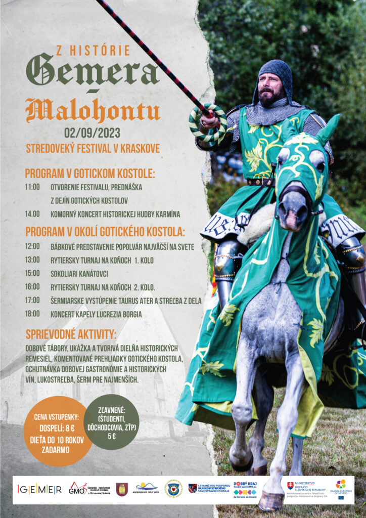 Podujatie začína v sobotou od 11:00 v gotickom kostole a jeho areáli v Kraskove. Tešiť sa môžete na rytiersky turnaj na koňoch, vystúpenia šermiarov, bábkové divadlo, komorný koncert historickej hudby, prednášky z dejín či vystúpenie sokoliarov.