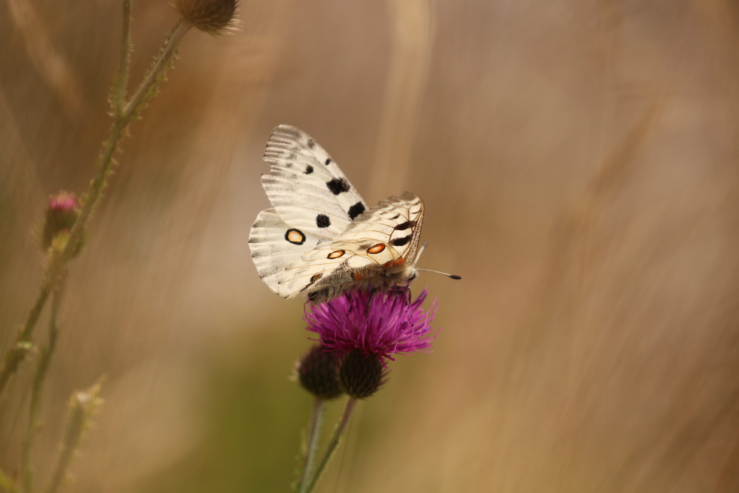 Prvým z chránených druhov je jasoň červenooký, jeden z najohrozenejších motýľov Európy. Tento vzácny druh potrebuje pre svoje prežitie suché, slnkom vyhriate bralá a kvetnaté lúky, ktoré boli v minulosti prirodzene udržiavané pastvou, informovala Mária Pikuláková, z občianskeho združenia Lesmír. Podľa jej slov, postupné zarastanie týchto lokalít náletovými drevinami predstavuje pre tento druh vážnu hrozbu.
