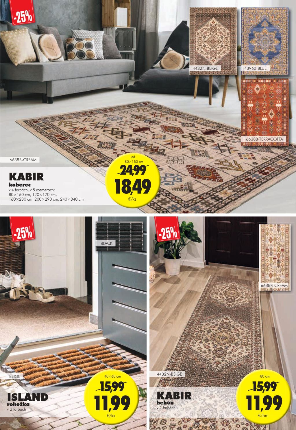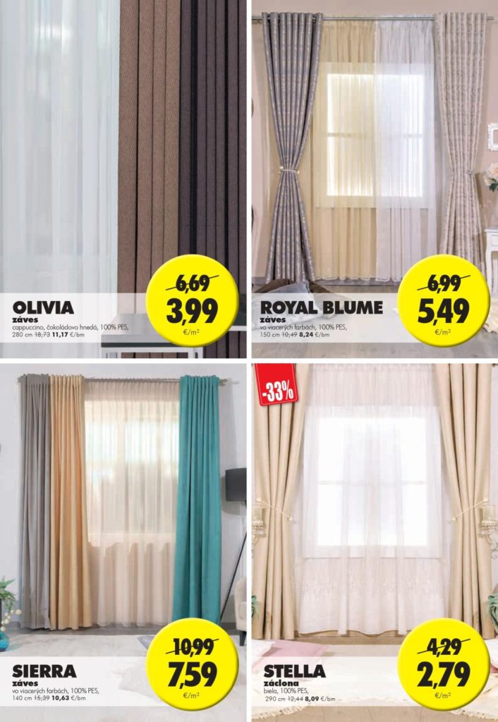 Aktuálny výber kobercov vám pokryje celý dom, od detskej izby, spálne až po obývačku. Široká je aj ponuka závesov, záclon a tapiet.
