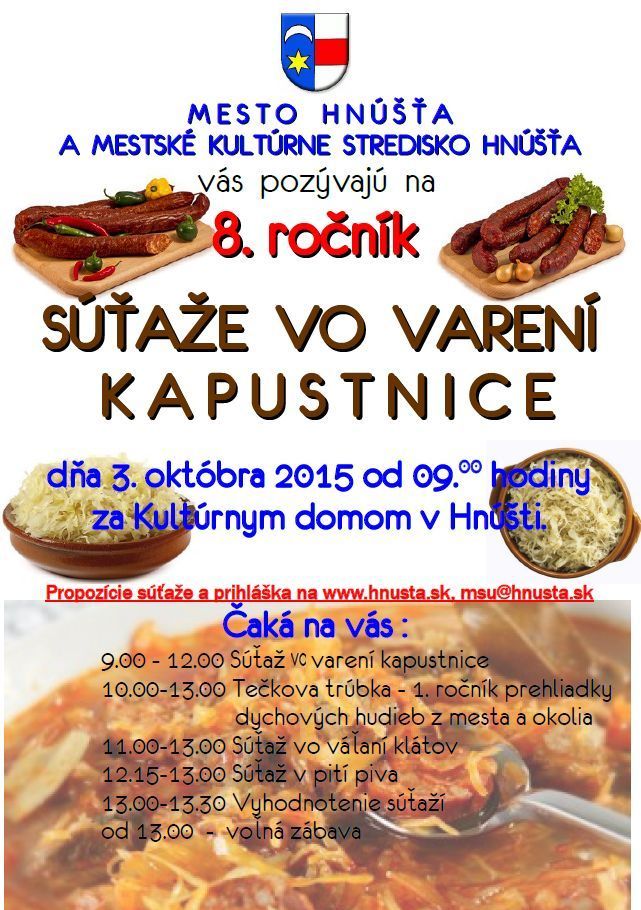 Sobota, 3. októbra, bude podľa Vargovej patriť tradičným jedlám. Ako poznamenala v Hnúšti si prídu na svoje milovníci kapustnice, ale aj dychovej hudby, ktorá bude sprievodnou aktivitou súťaže. „Po upršanom predchádzajúcom víkende bola na tento deň preložená aj súťaž vo varení tradičných jedál v obci Kokava nad Rimavicou, ktorá je spojená s kultúrnym programom a posedením pri ľudovej hudbe,“ dodala manažérka, podľa ktorej je v rovnaký deň pre turistov pripravená v Utekáči tradičná túra Utekáčska horská tridsiatka.