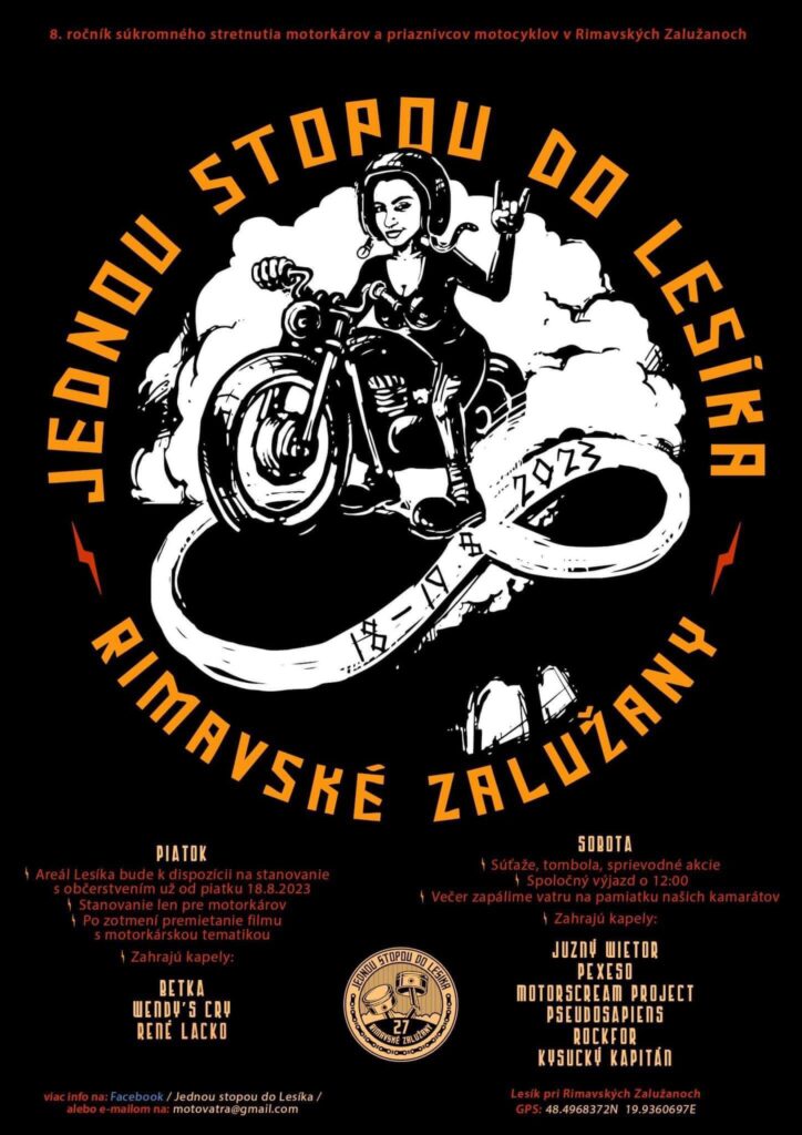 "O 20:30 zapálime vatru ako spomienku na našich zosnulých kamarátov. Pre deti bude pripravený skákací hrad a od piatku aj strenica na paintball. Pre najmenších motorkárov bude vyhradený priestor na jazdenie na lúke pri rybníku," dodali organizátori s tým, že stanovanie a kempovanie bude umožnené len motorkárom, organizátorom a pomocnému personálu.