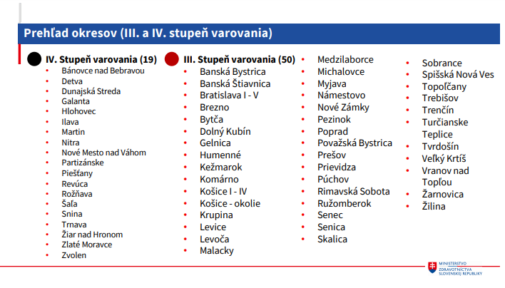 Z pohľadu covid automatu ostáva celé Slovenko v čiernych farbách. Z regionálneho hľadiska je 19 okresov v čiernej zóne, 50 v bordovej a 10 v červenej. Okres Rimavská Sobota ostáva naďalej v bordovej zóne, farbu nezmenili ani okolité okresy. Podľa predpokladaného trendu je situácia v okrese pozitívna, čo znamená, že by sa mohol dostať medzi červené okresy.