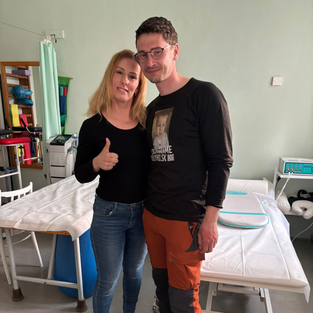 Na jeho náročnej ceste prišla pomoc aj v nečakaných chvíľach. Počas víkendu sa zastavil na neurologickom oddelení, kde vyhľadal pomoc pre bolesti kolena. Hoci sa v takom čase fyzioterapia bežne neposkytuje, výnimkou bola situácia, ktorá si ju jednoducho vyžiadala. Fyzioterapeutka Erika Gubalová neváhala a prišla, aby mu pomohla – pomocou tapingu mu aspoň dočasne uľavila, aby mohol pokračovať ďalej.