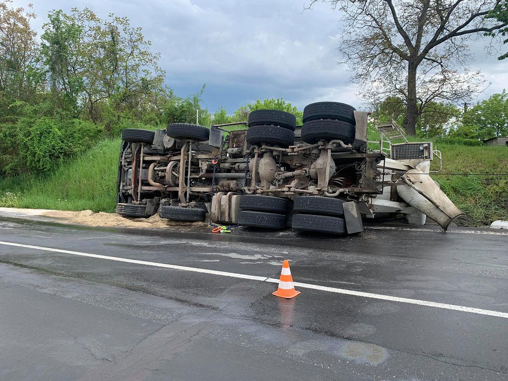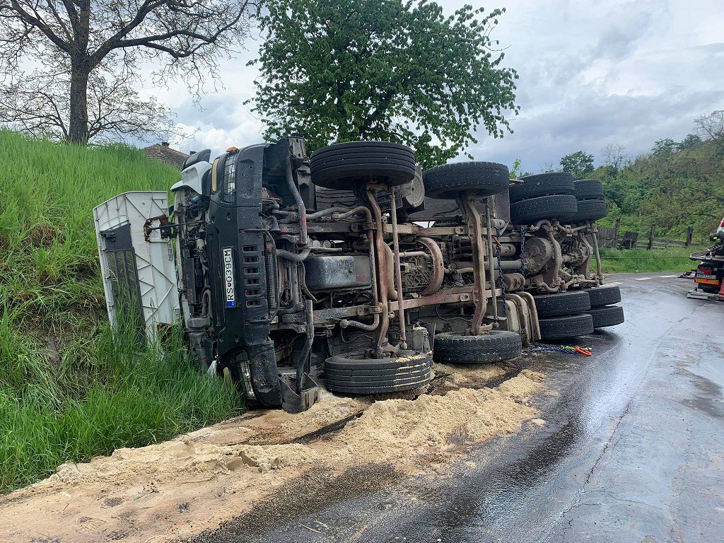 OŽĎANY: V serpentínach sa prevrátil domiešavač, jedna osoba bola zranená