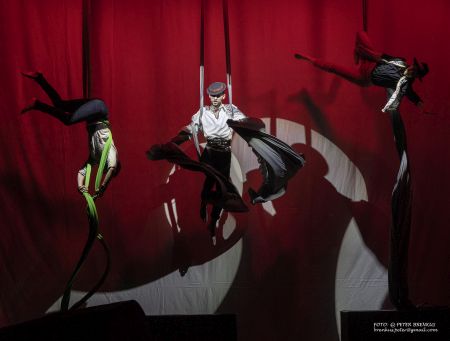 Na jednej strane lyrická poézia, na druhej strane tancujúci, padajúci a lietajúci groteskne karnevalový svet v novátorskom spracovaní nového cirkusu.
