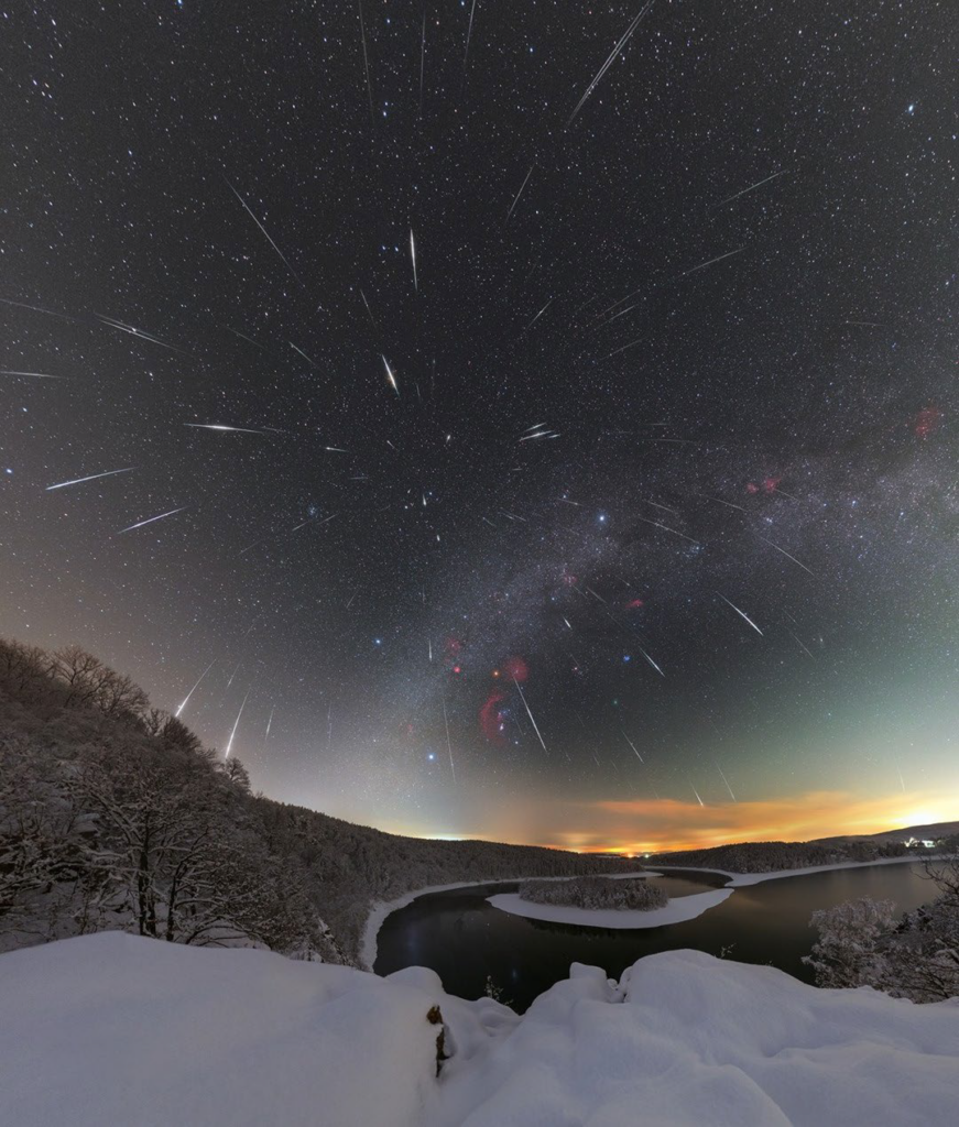 Geminidy v roku 2018 na priehradou Seč (ČR). Foto: Petr Horálek