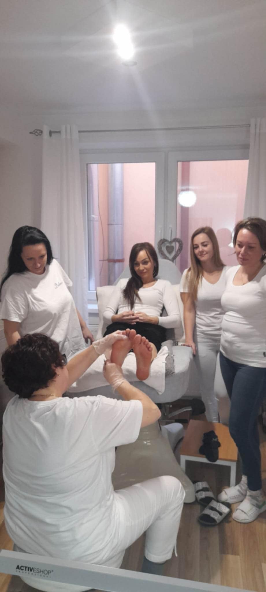 Najväčší záujem je o kombinovanú pedikúru – šetrnú, účinnú a dlhodobo udržateľnú. Nohy sa najprv namáčajú v liečivej soli, ktorá zmäkčí pokožku a dezinfikuje, potom sa skalpelom odstráni zhrubnutá koža a brúskou sa precízne upravia nechty. „Všetko prebieha bezpečne a bez nepríjemných pocitov,“ dodáva s úsmevom Annamária.