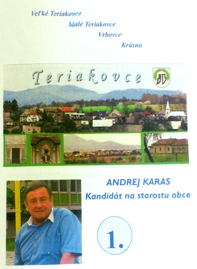 Od volieb uplynul viac ako týždeň. Starostovia aj poslanci sú zvolení, nastal čas na plnenie predvolebných sľubov a vízií víťazných kandidátov. Boj o voličov síce majú dávno za sebou, no z niektorých obcí o ňom ešte zrejme budeme počuť. Popri vážnych podozreniach na nekalú kampaň, ktoré rieši polícia, sa niekde objavili aj postrehy prinajmenšom úsmevné. Rimava.sk dostala viacero upozornení na predvolebný leták zobrazujúci súčasného starostu, ktorý sa opätovne uchádzal o priazeň voličov. Bol určený pre obyvateľov Veľkých Teriakoviec. Fotografia s erbom, ktorá letáku dominovala, však zobrazovala úplne iné Teriakovce – dedinku na východnom Slovensku, pri Prešove.