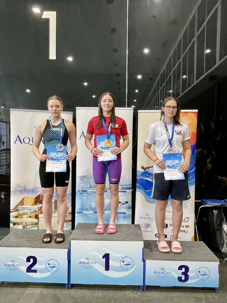 Sofia Látková skončila piata na 200 metrov voľný spôsob a dvakrát šiesta (100 motýlik a 100 znak). Sofia Timková sa začína profilovať ako motýlkarka – na 50 metrov motýlik bola deviata a na stovke jej tesne ušlo pódium, keď skončila štvrtá. Podľa klubu doplatila na slabšiu rozplavbu, keďže štartovala na základe staršieho času.