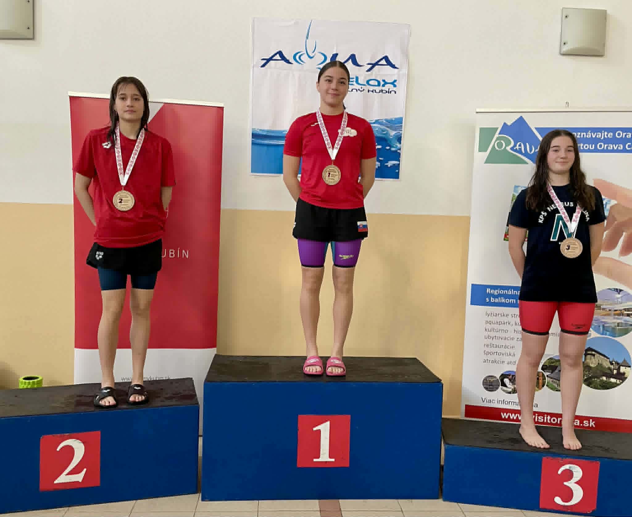 V rovnakej vekovej kategórii excelovala aj Sofia Látková. Tá si vyplávala zlato v náročnej disciplíne 200 metrov motýlik, striebro na polovičnej motýlikovej trati a bronz v kraulovej stovke. Ako informoval klub na svojej sociálnej sieti, práve tieto dve pretekárky potvrdili stúpajúcu formu pred náročnými pretekmi, ktoré ich čakajú.