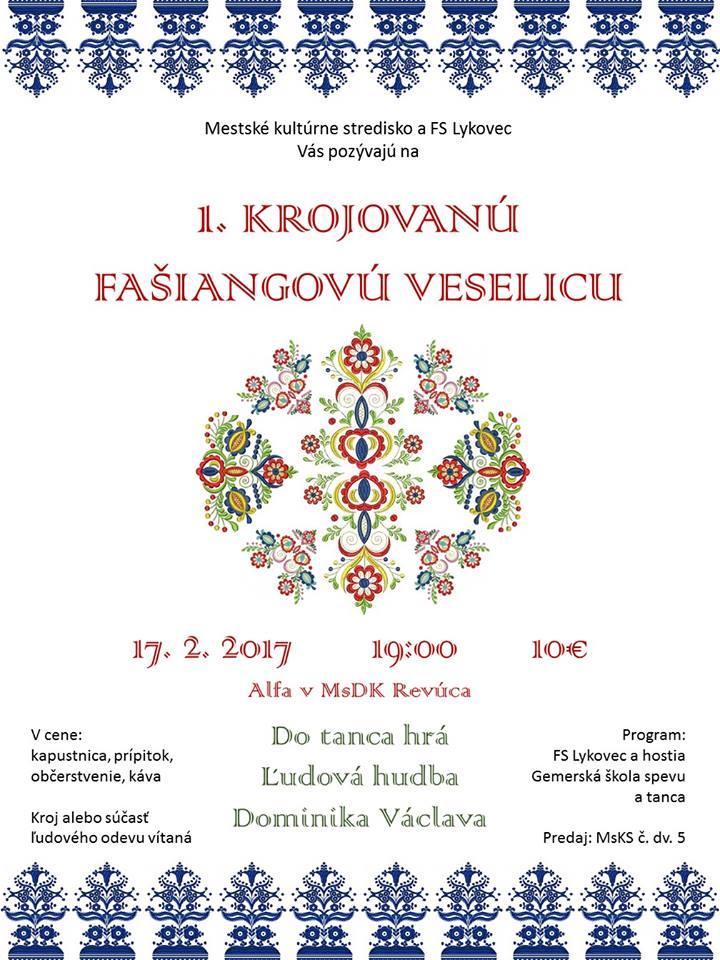 Víkend sa začne už dnes podvečer, 17. februára, kedy štafetu plesov prevezme Krojovaná fašiangová veselica, tá roztancuje Dom kultúry v Revúcej. Sobota, 18. februára, bude patriť otvoreniu modelárskej sezóny na Slovensku, ktorú zahája v Dome kultúry v Rimavskej Sobote. V priestoroch „Kulturáku“ predvedú svoje modely majstri trpezlivosti pevných rúk v niekoľkých kategóriách, vrátane tej špeciálnej zameranej na tanky Tiger I, v ktorej si víťaz odnesie finančnú odmenu v hodnote 100 eur. Na 7. ročníku Model Fest-u sa modelári môžu tešiť aj na workshop jedného z najlepších slovenských modelárov Martina „Reda“ Kováča, ktorý sa v ňom zameria na nanášanie hrubých vrstiev blata na model.