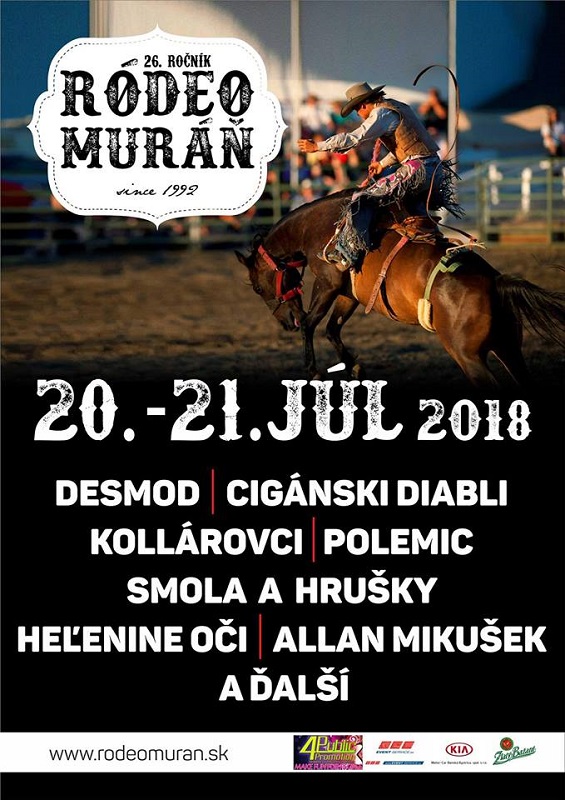Dva dni (20. a 21. júla) plné nielen hudby zažijete aj na 26. ročníku Ródea Muráň. Predstaví sa skupina Desmod, Polemic, Smola a Hrušky, ale aj Kollárovci či Cigánski diabli. Svoje umenie však predvedú aj ródeo jazdci. Westernovú sobotu však zažijete aj v Mestskej záhrade v Rimavskej Sobote. Okrem jazdy kočom sa môžete tešiť na ryžovanie zlata, westernové ukážky a do nálady zahrá skupina Elektrum a Bluetrend.