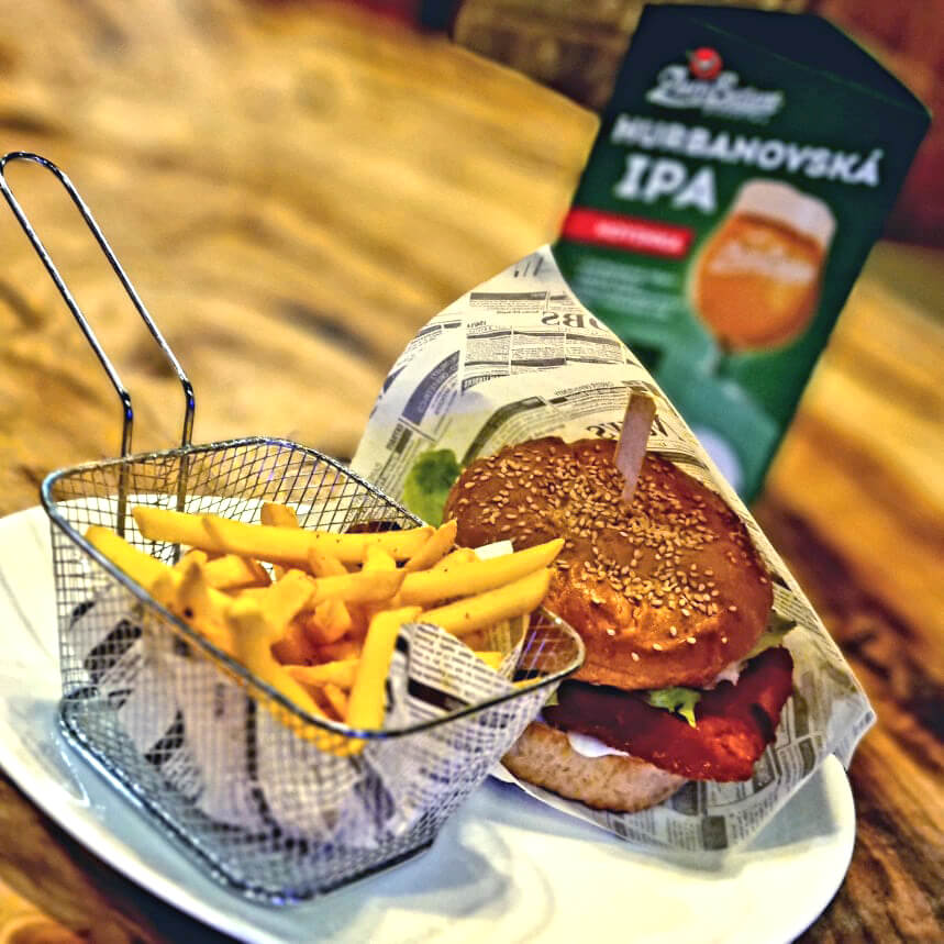 V príjemných priestoroch si môžete posedieť napríklad pri dobrom pive, ktoré si môžete vybrať z troch druhov - svetlé výčapné pivo Krušovice, výnimočný ležiak Zlatý Bažant '73 a jedinečná Hurbanovská IPA. Milovníci nealko radlera si tu rovnako prídu na svoje.
