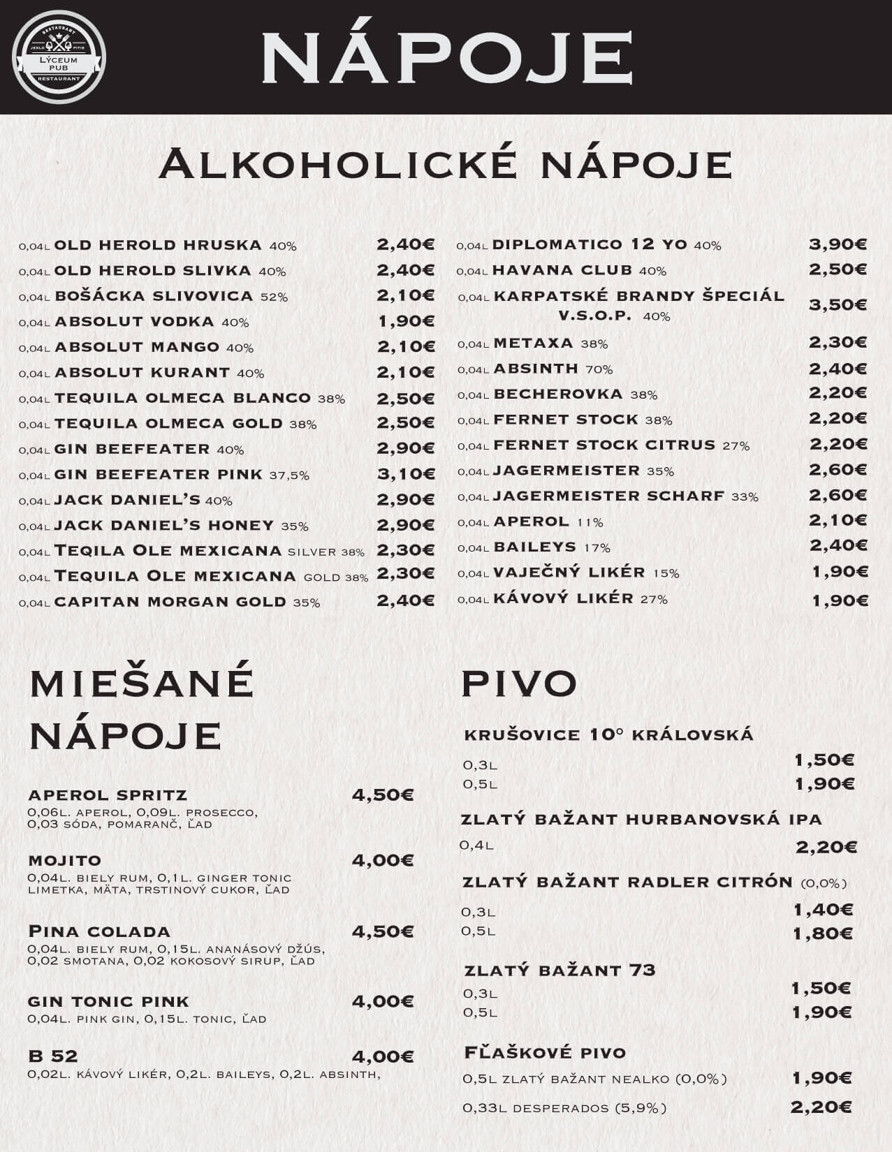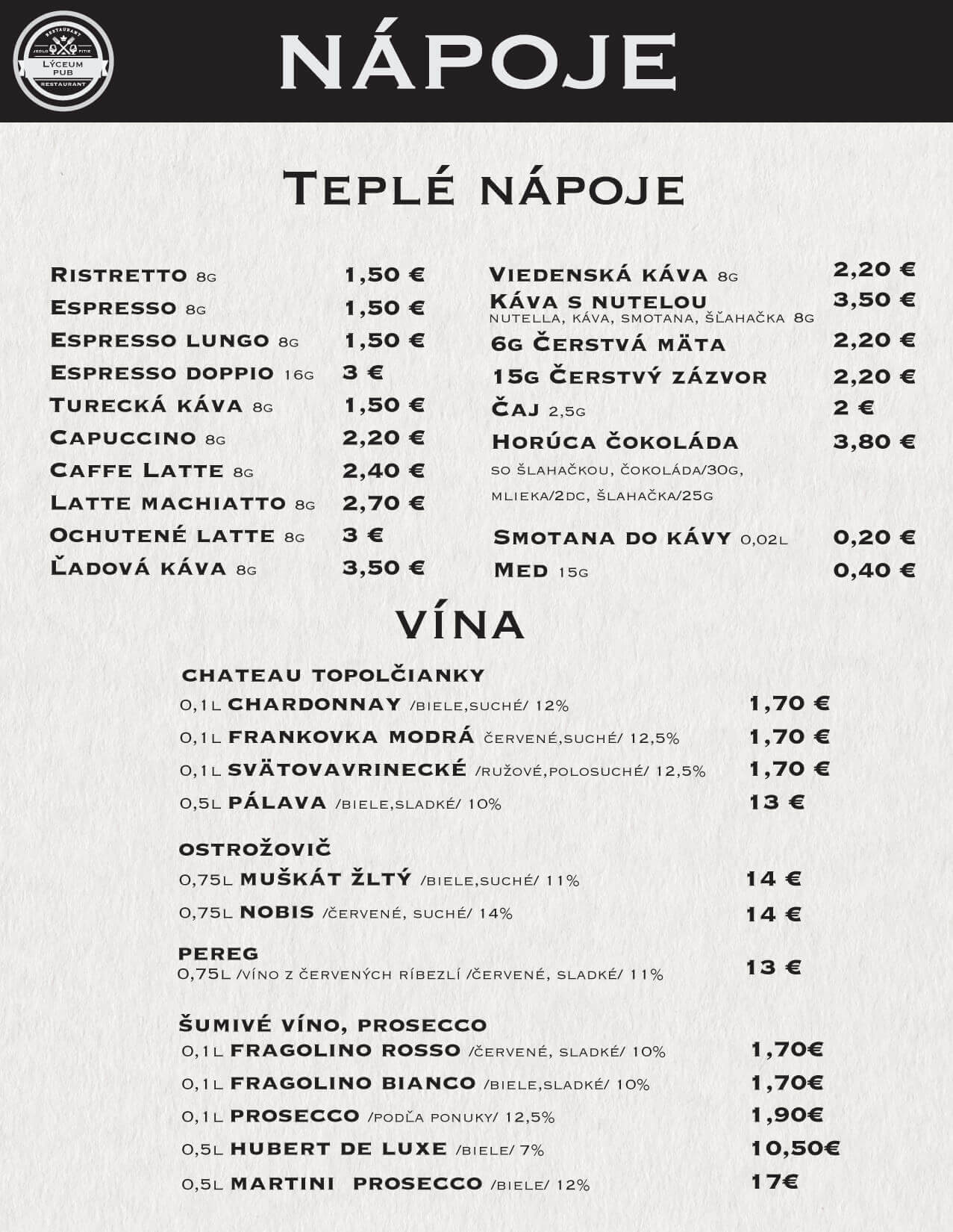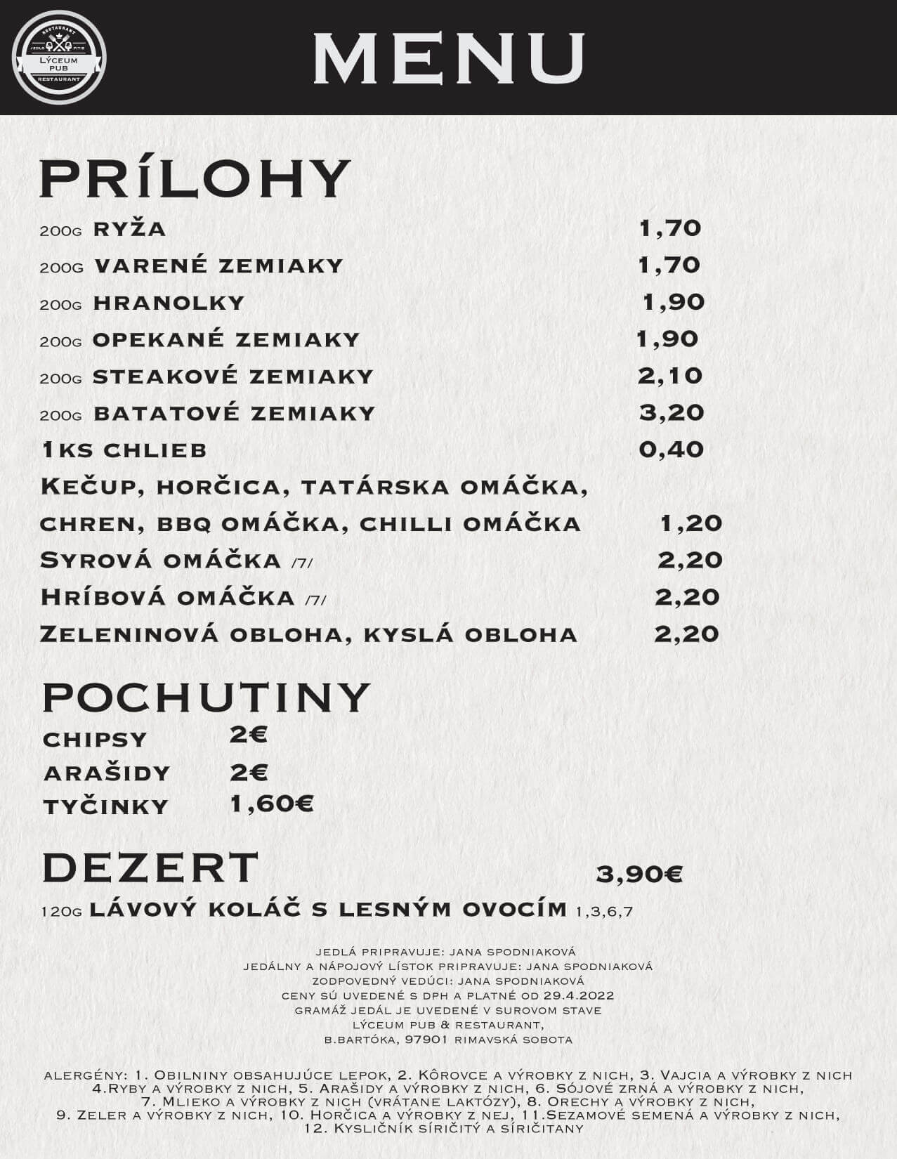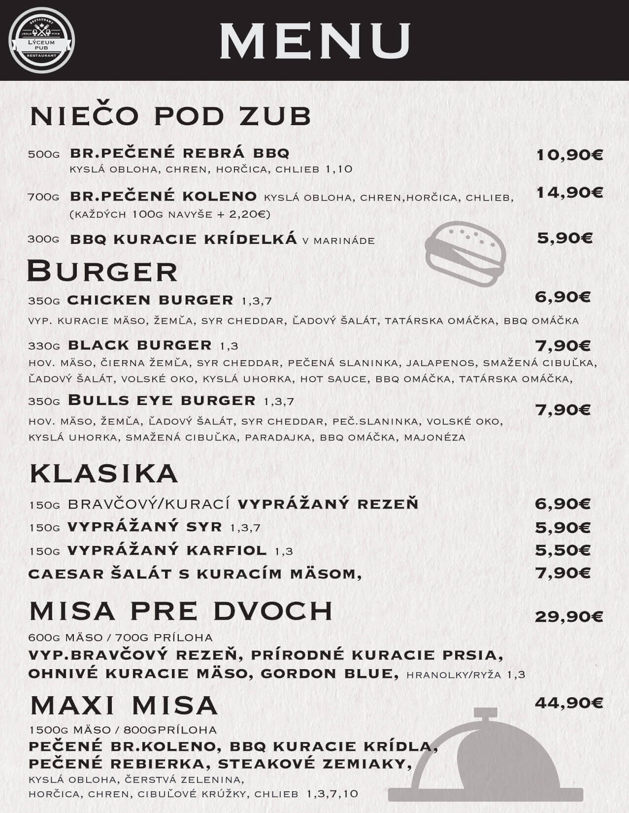 Dostali ste chuť na hamburger, rebierka alebo napríklad grilovanú panenku, ale chcete si ich vychutnať doma či niekde inde? Žiaden problém. Od 10-tej do 13-tej hodiny vám jedlá z denného menu, ktoré ponúka Reštaurácia Lýceum a Lýceum Pub & Restaurant prinesú kamkoľvek a od 13-tej do 18-tej hodiny si môžete objednať priamo z ich jedálneho lístka.