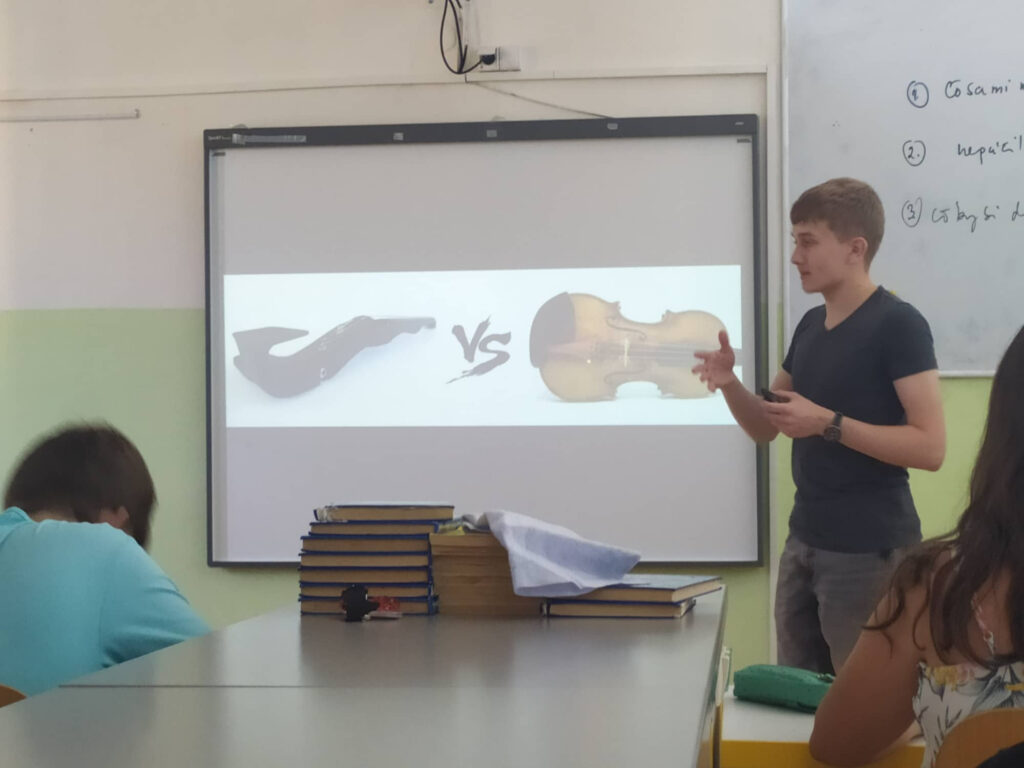 Vratko Mančuška si vytlačil a zložil vlastné elektronické husle. Následne ich ozvučil a ich zvuk porovnal s akustickými husľami na vzorke 150 študentov. V súčasnosti husle testuje pomocou aplikácie a výsledky svojich meraní zhrnie v odbornej práci v rámci stredoškolskej odbornej činnosti (SOČ).