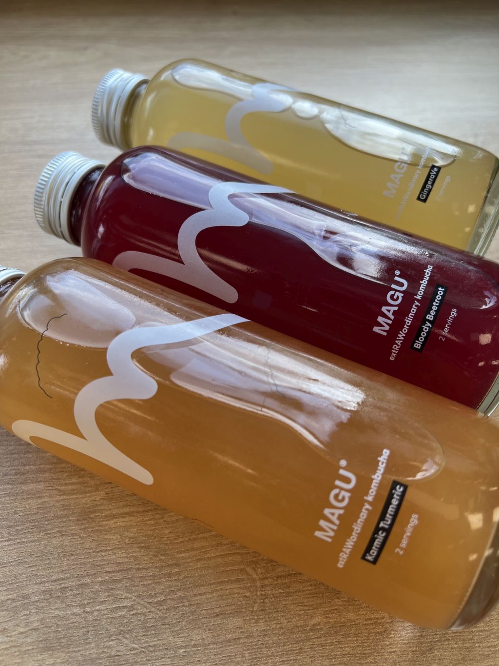 Tie v MAGU premenia po viac ako 5-týždňovej fermentácii pôvodný čajový nálev na živý produkt tvorený miliardami probiotických baktérií, polyfenolmi, aktívnymi enzýmami a organickými kyselinami. MAGU nie je pasterizovaná, filtrovaná ani konzervačne upravovaná, preto musí byť skladovaná v chladničke. A aké príchute ponúka? Napríklad zázvorovo-limetkovú, zázvorovo-mrkvovú s kurkumou alebo pomarančovo-repovú so zázvorom.
